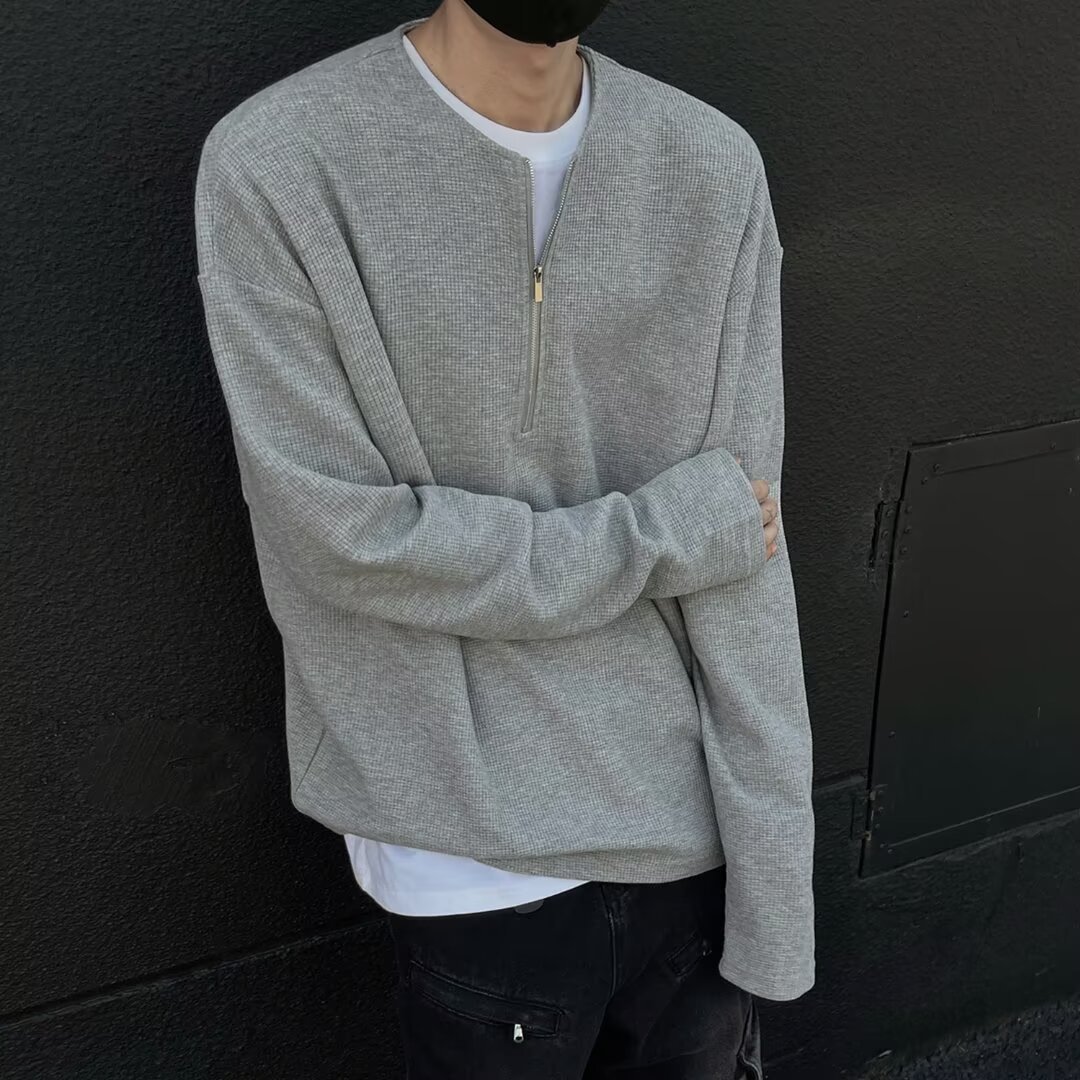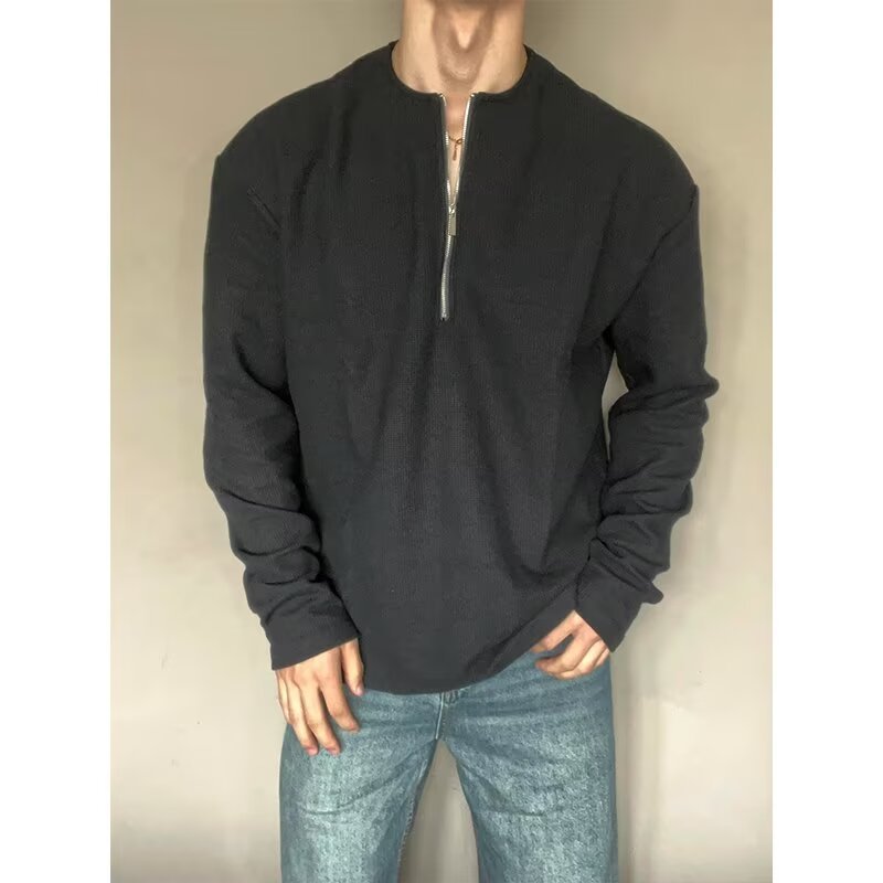 Главная страница > ФУТБОЛКА С ДЛИННЫМ РУКАМ ФУТБОЛКА Мужская весна и осень 2024 Новый американский свободный досуг премиум-класса полузастежка на молнии одежда