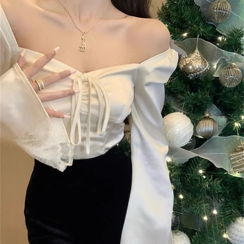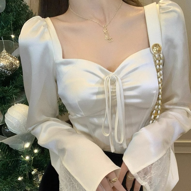 Главная страница > Трансграничная фабрика европейский и американский воротник с длинными рукавами рубашка женская рубашка весна и лето белая короткая кружевная дрожь Taobao