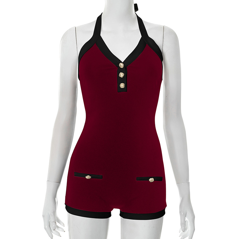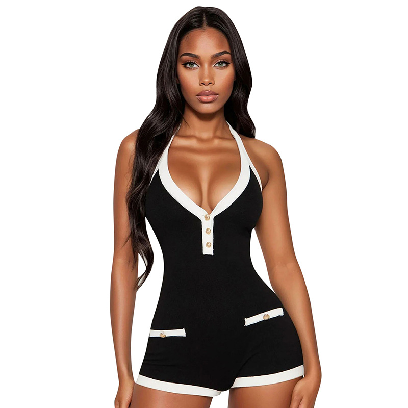 Главная страница > J25RP090 Европейские и американские трансграничные женские весенне-летние брюки с лямкой на шее и открытой спиной на пуговицах с искусственным карманом и ультра-коротким комбинезоном на талии