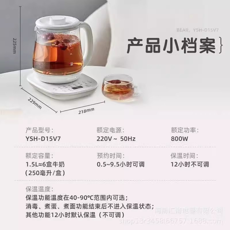 Главная страница > Чайник Bear Health, электрический чайник, 1,5 л, для домашнего офиса, многофункциональный стеклянный чайник с постоянной температурой, цветочный чай YSH-D15V7