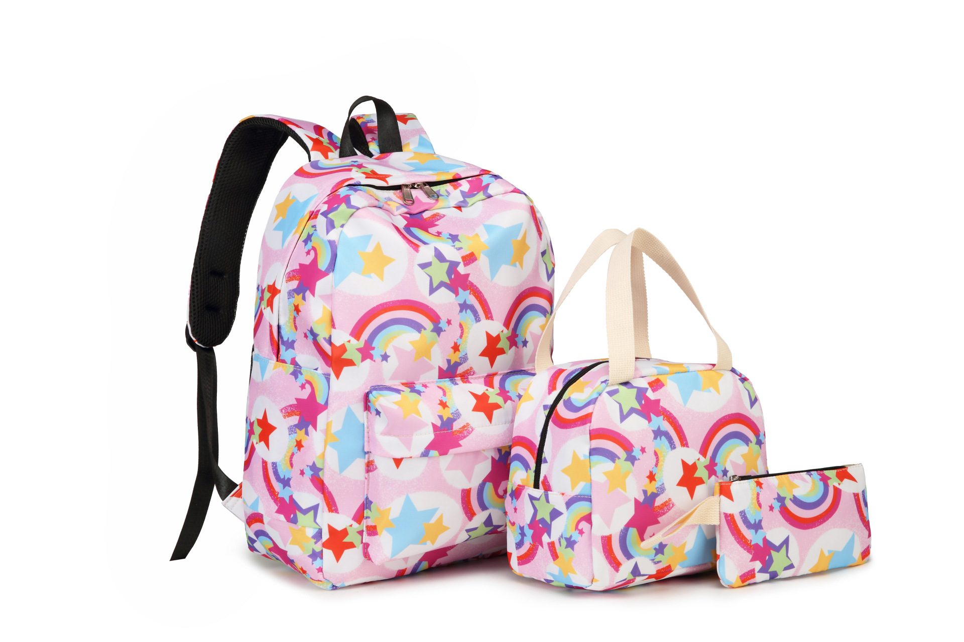 Новый трансграничный комбинированный комплект из трех предметов, повседневная школьная сумка для студентов, простой рюкзак большой вместимости, сумка для обеда, сумка-карандаш