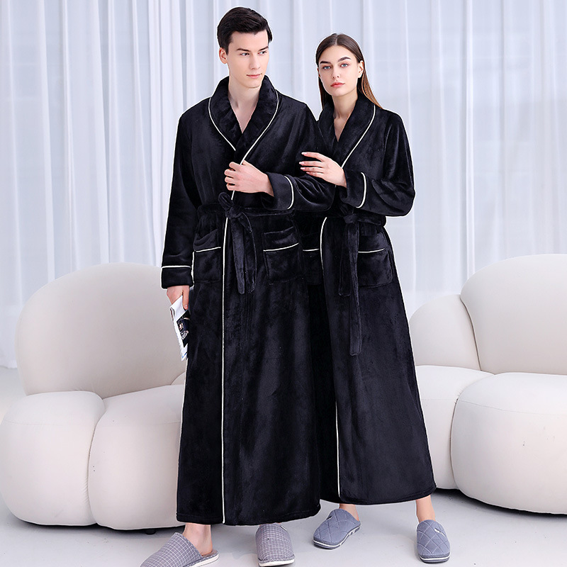 Главная страница > Осенне-зимняя утолщенная фланелевая ночная рубашка для пар, женская зимняя длинная коралловая бархатная банный халат, мужские пижамы большого размера, домашняя одежда
