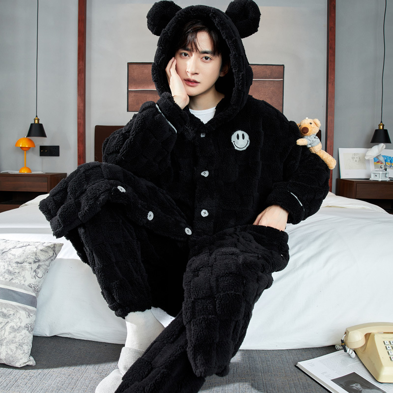 Главная страница > Новая мужская пижама из кораллового флиса, осенне-зимняя утолщенная теплая длинная ночная рубашка, мультяшная фланелевая Домашняя одежда, костюм