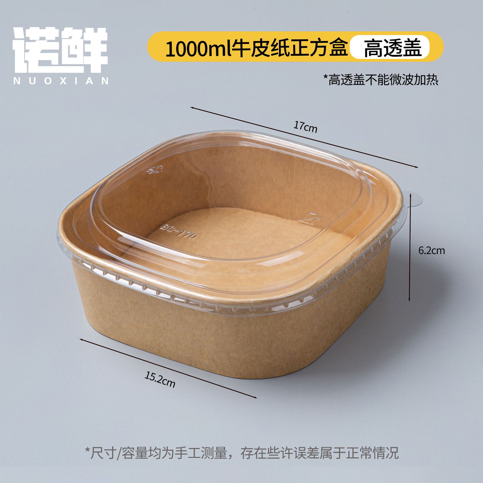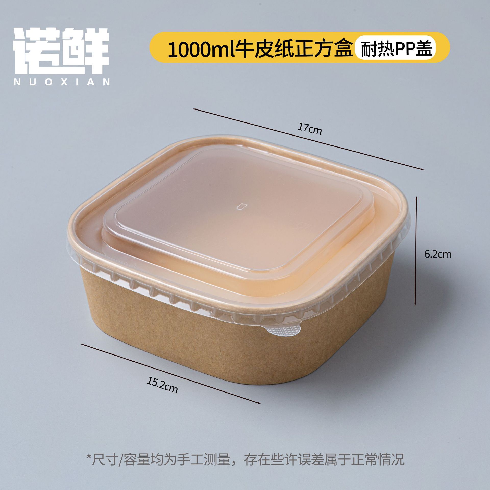 Квадратная коробка натурального цвета объемом 1000 мл + крышка из полипропилена.