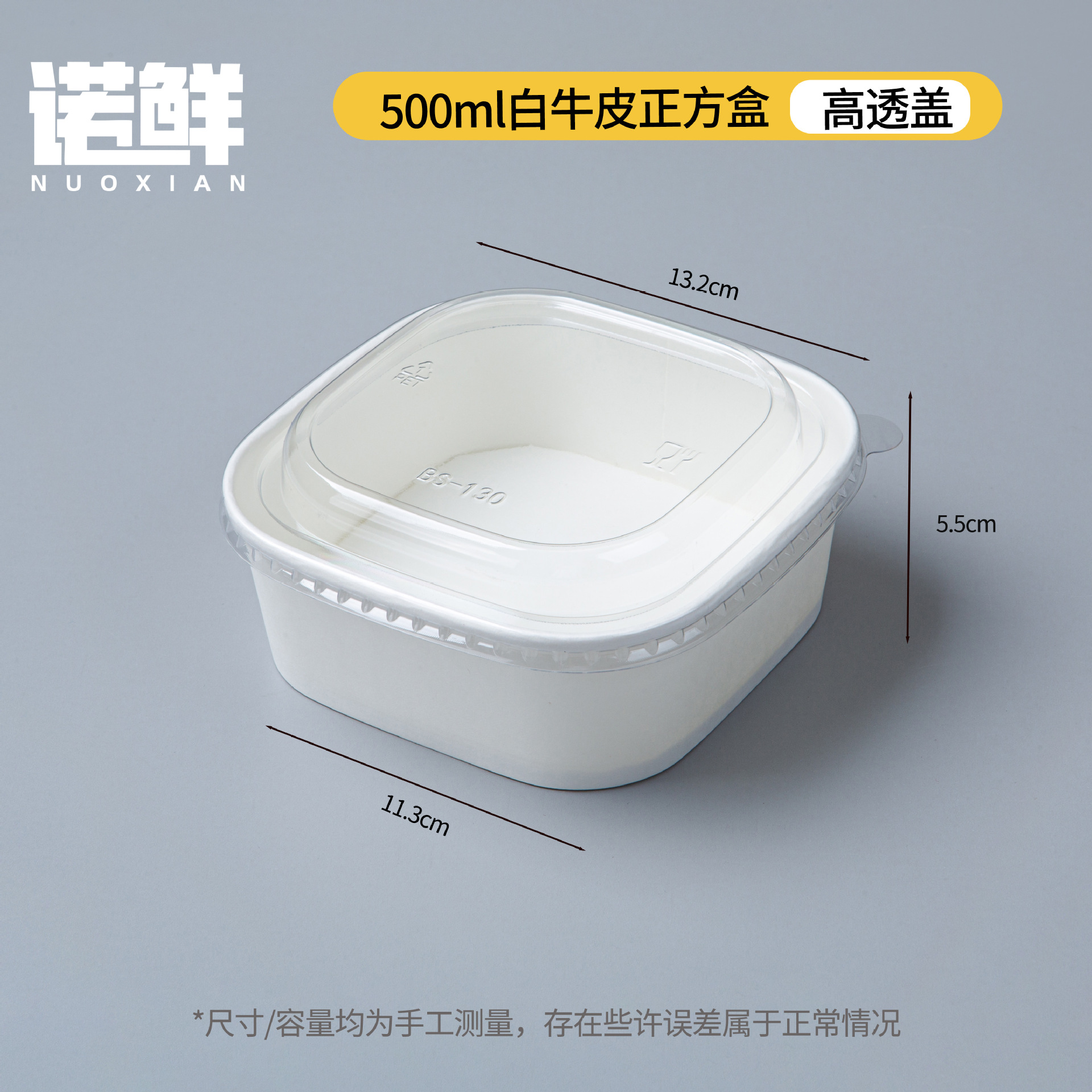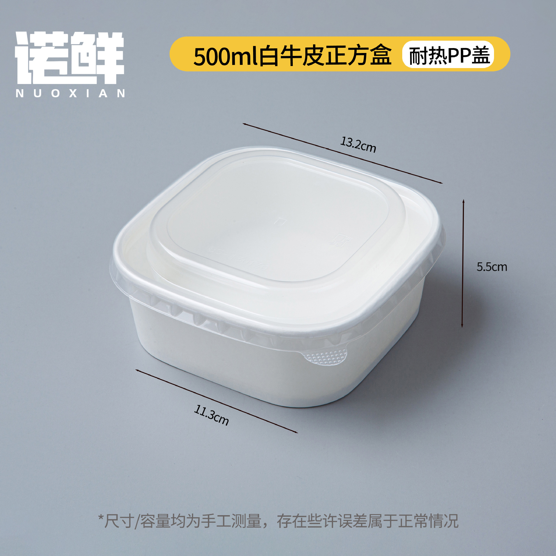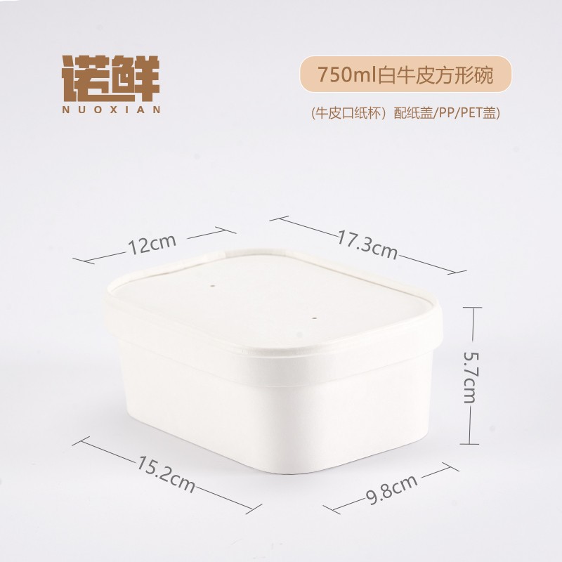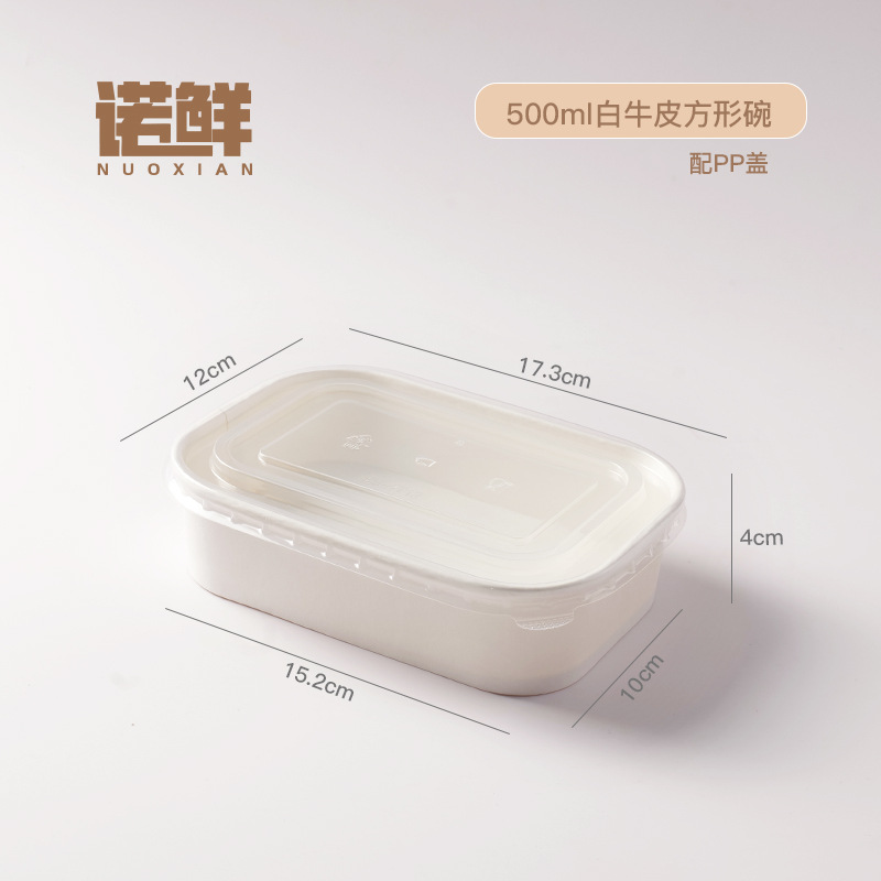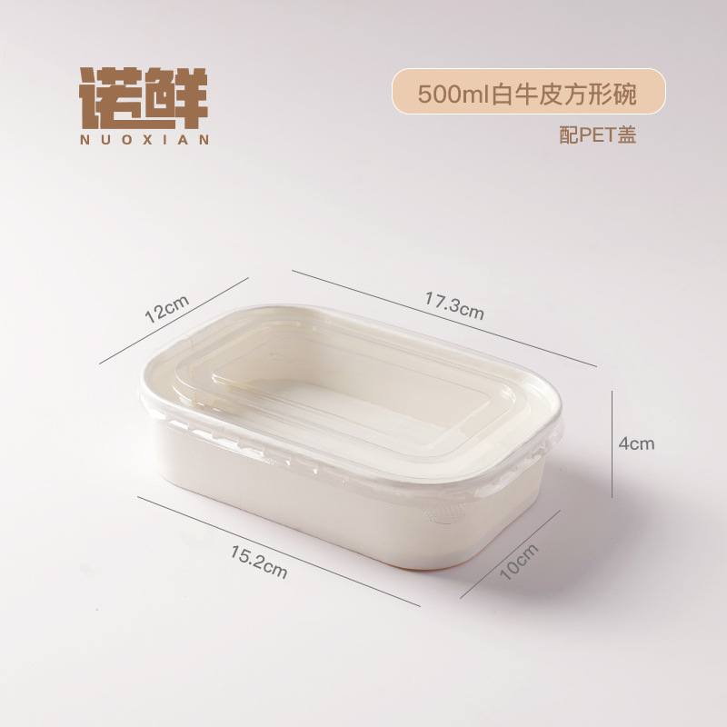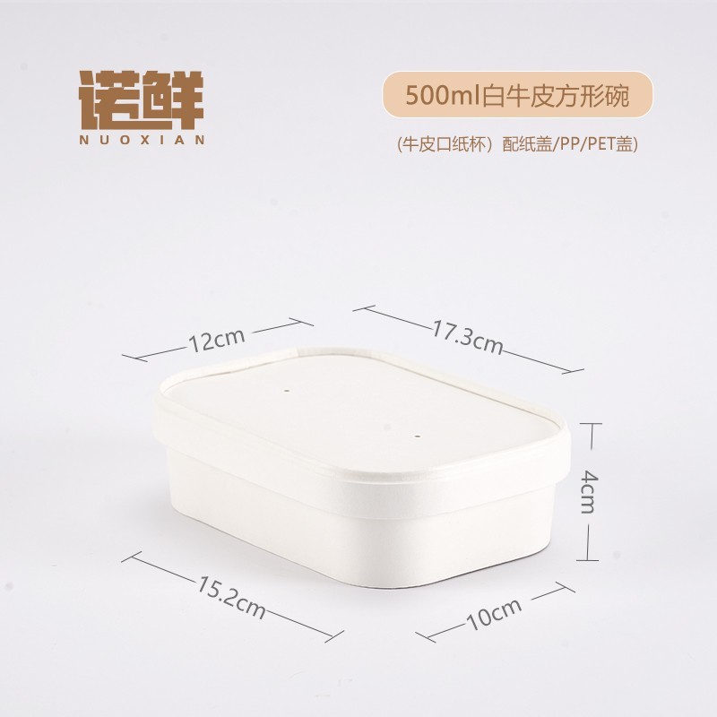 Белая прямоугольная коробка 500 мл + бумажная крышка