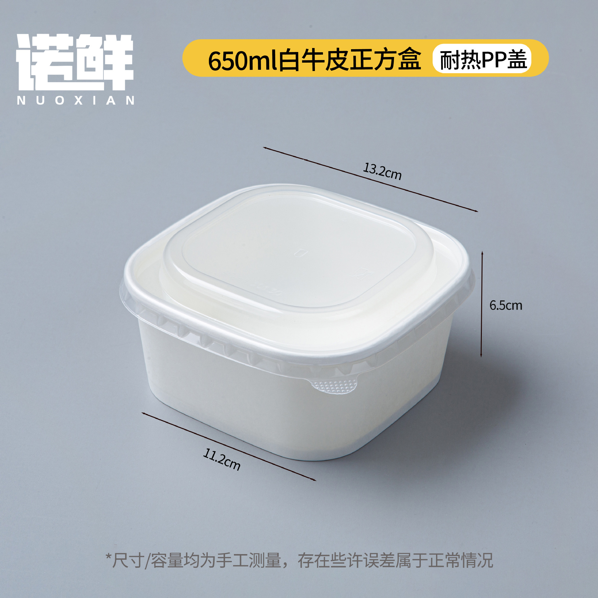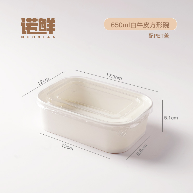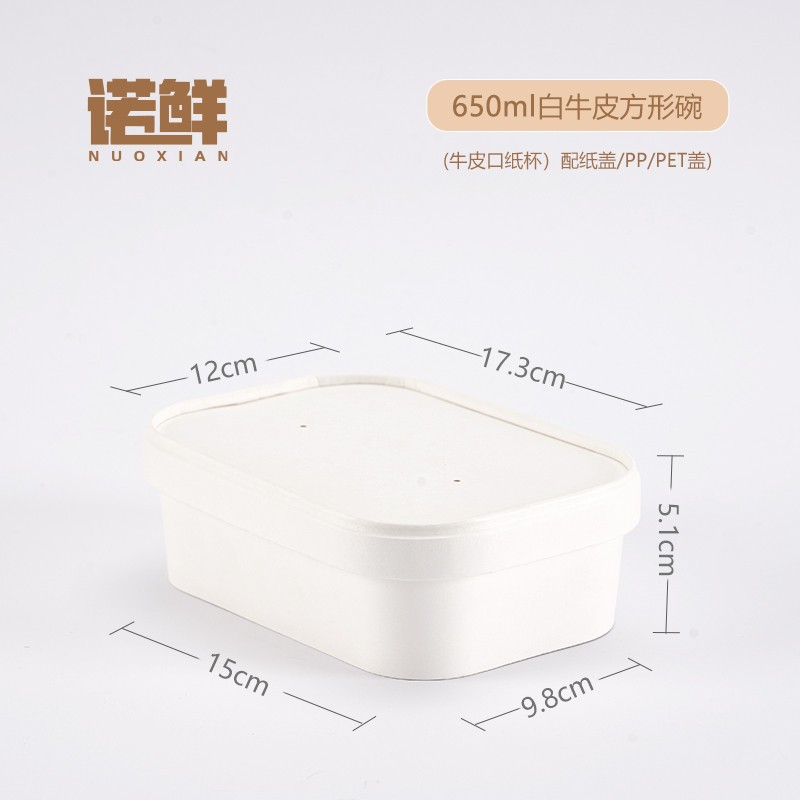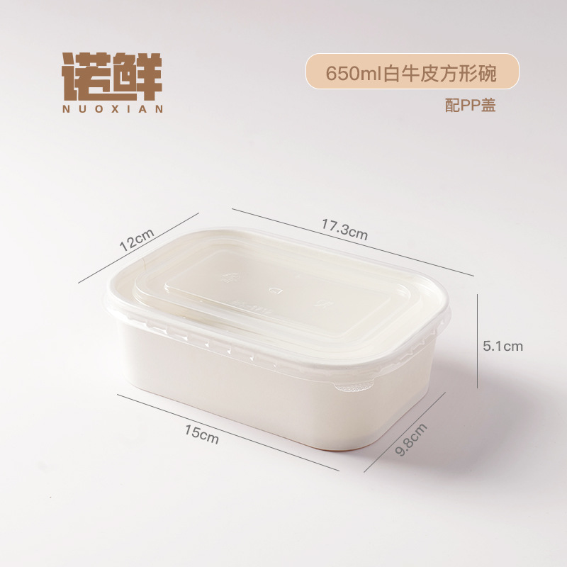 Белая прямоугольная коробка 650 мл + бумажная крышка