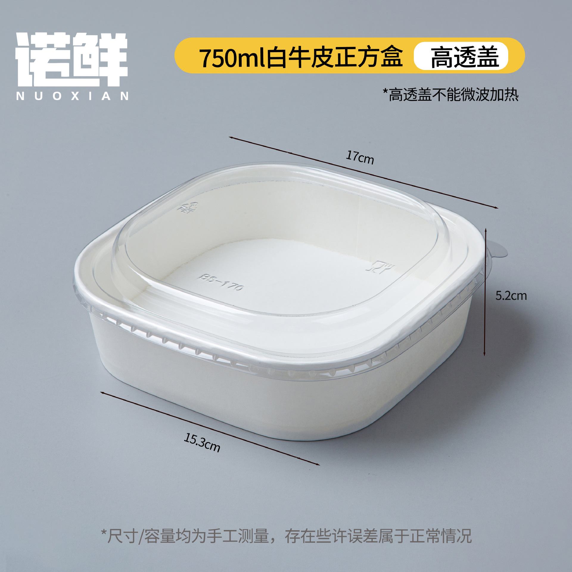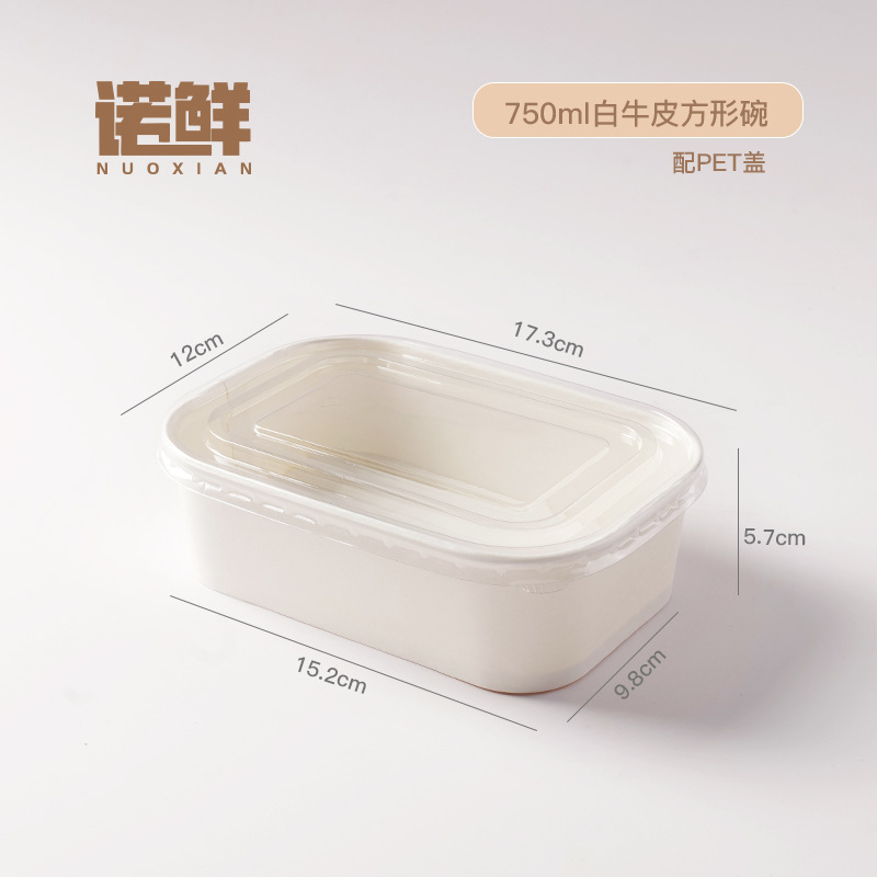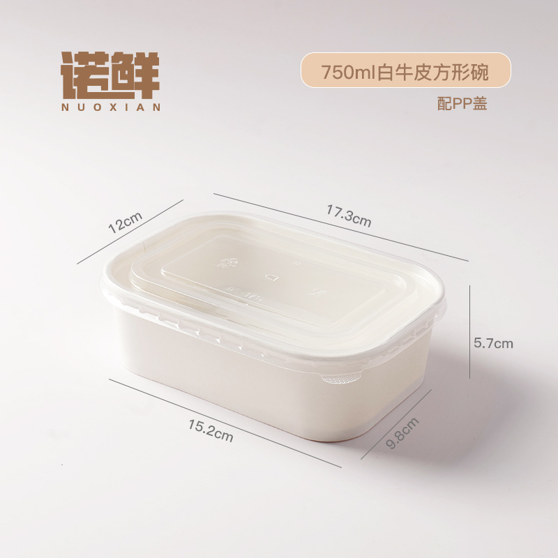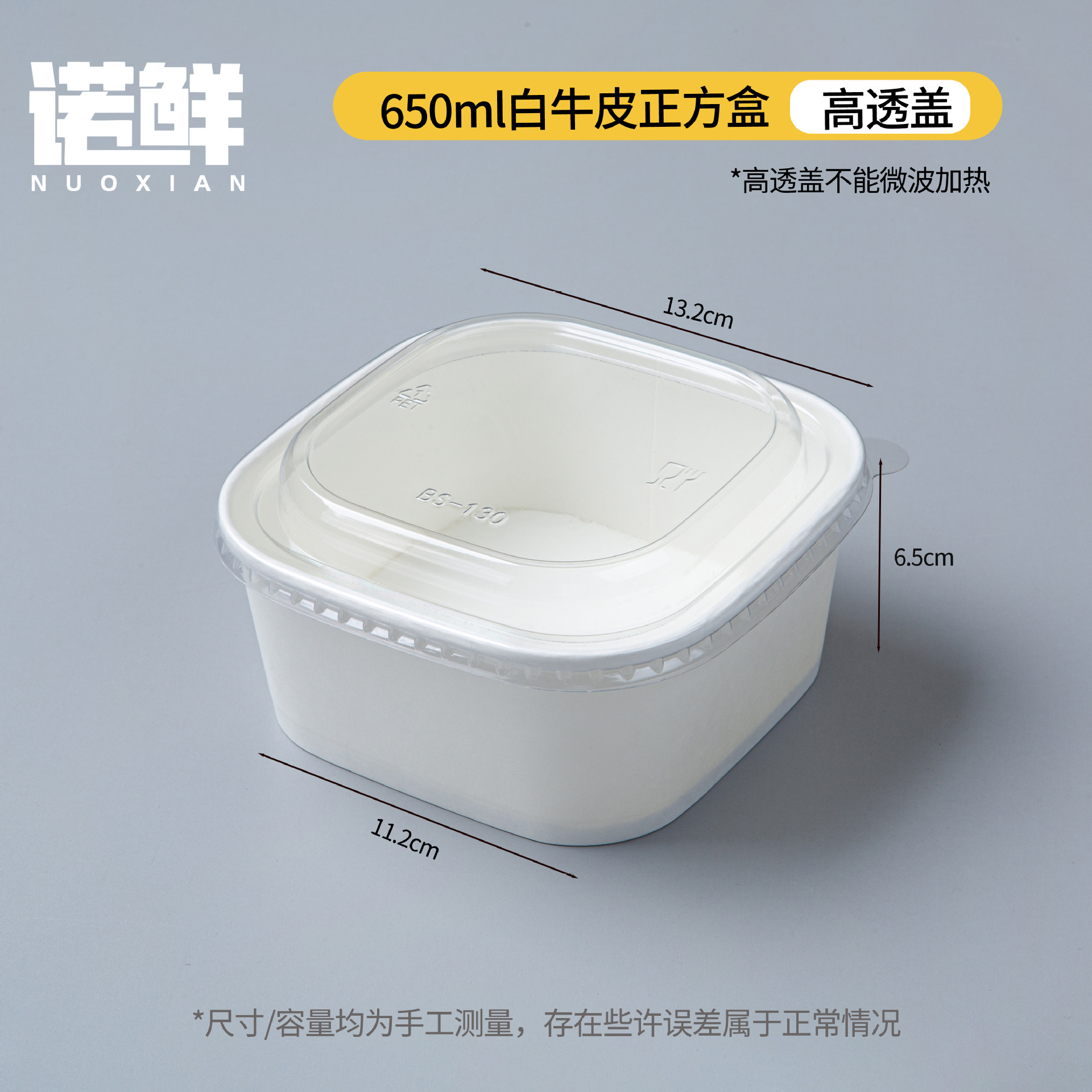 Белая прямоугольная коробка 650 мл + бумажная крышка