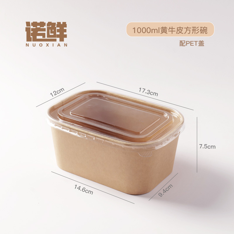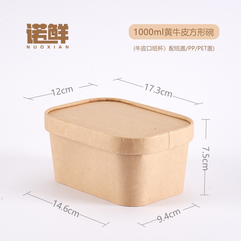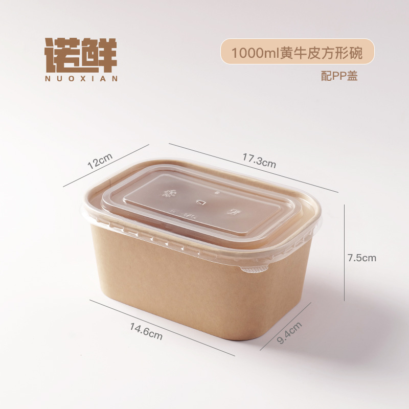 Прямоугольная коробка натурального цвета 1000 мл + крышка из полипропилена.