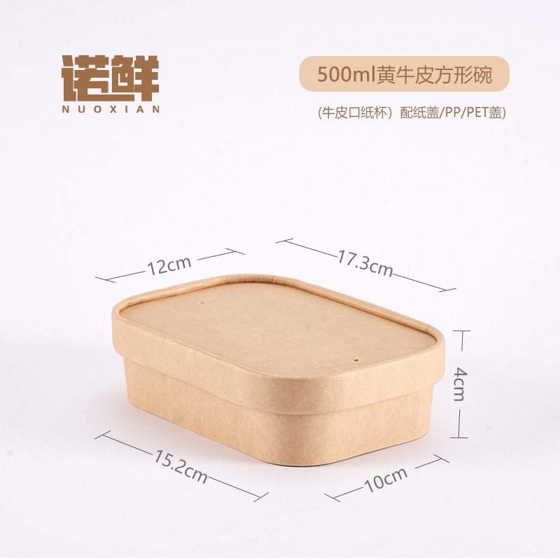 Прямоугольная коробка натурального цвета 500 мл + бумажная крышка