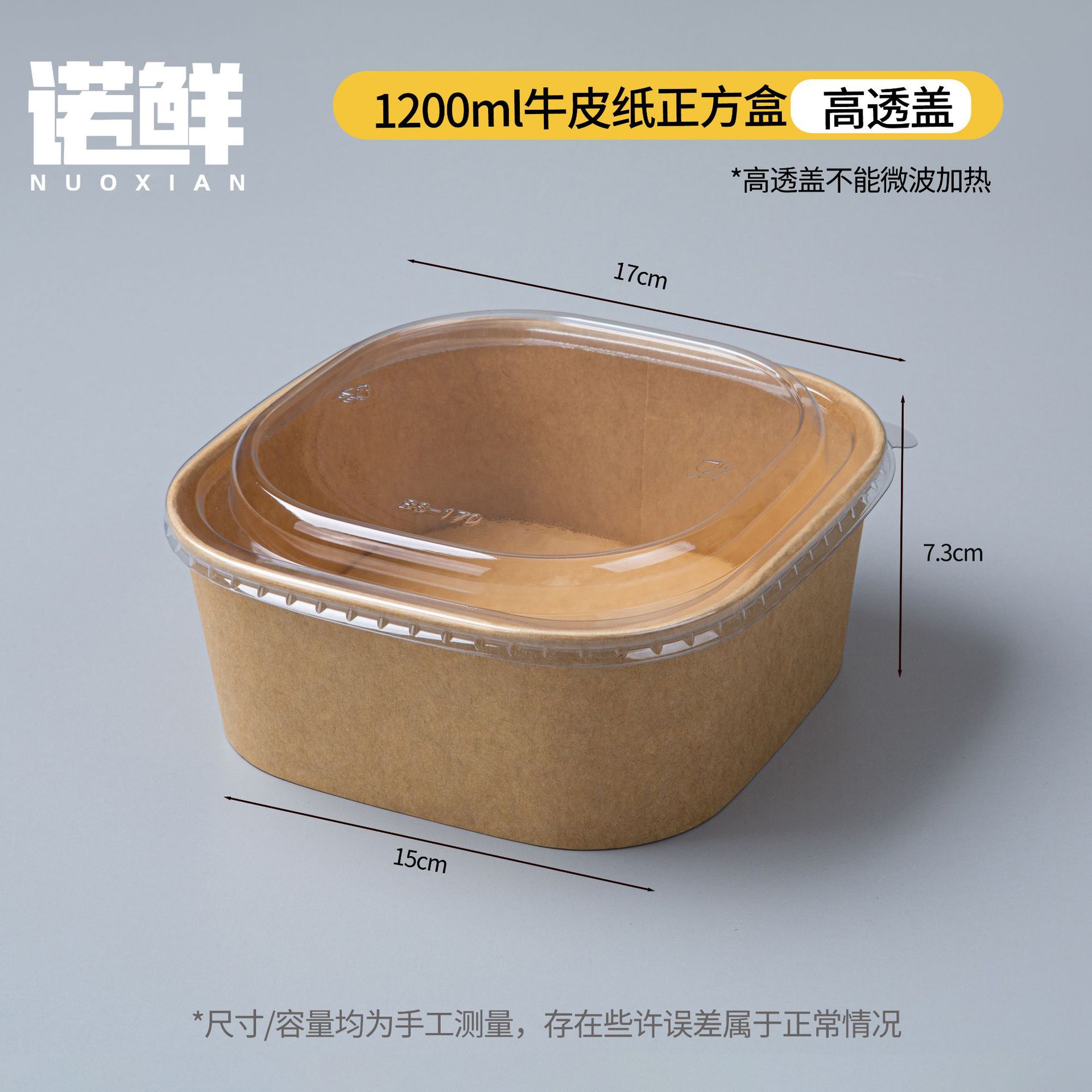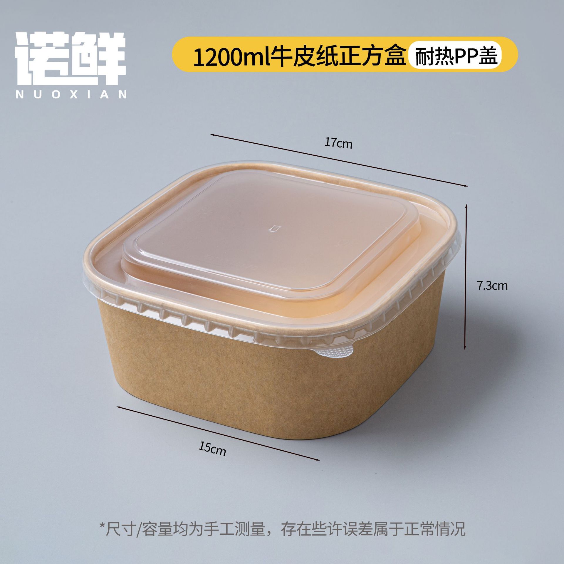 Квадратная коробка натурального цвета, 1200 мл + полипропиленовая крышка.