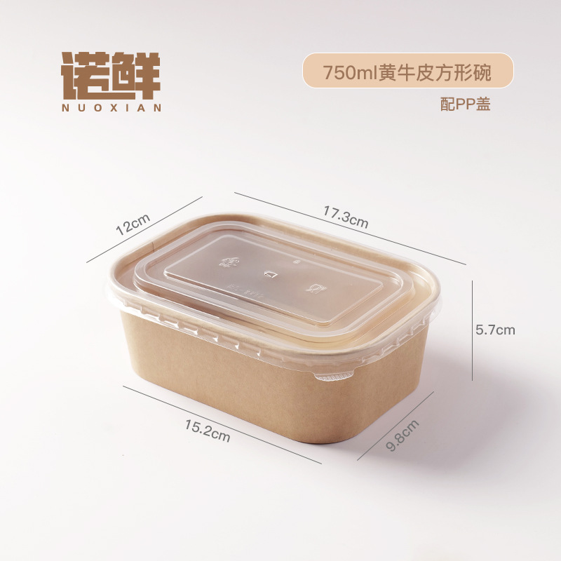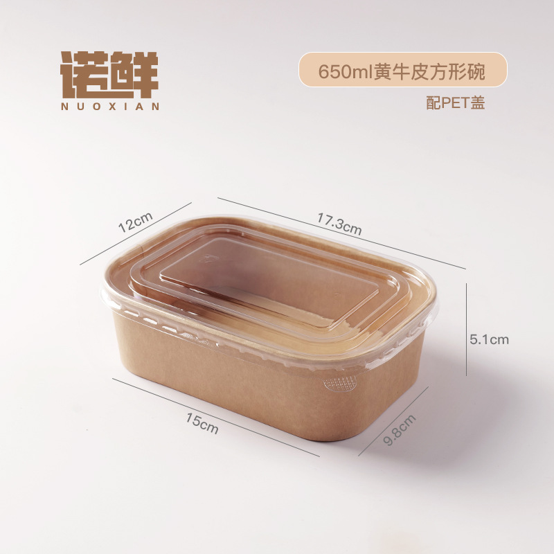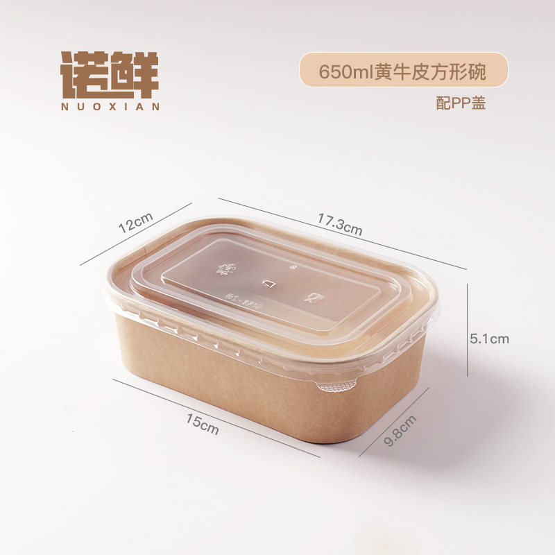 Прямоугольная коробка натурального цвета 650 мл + крышка из полипропилена.