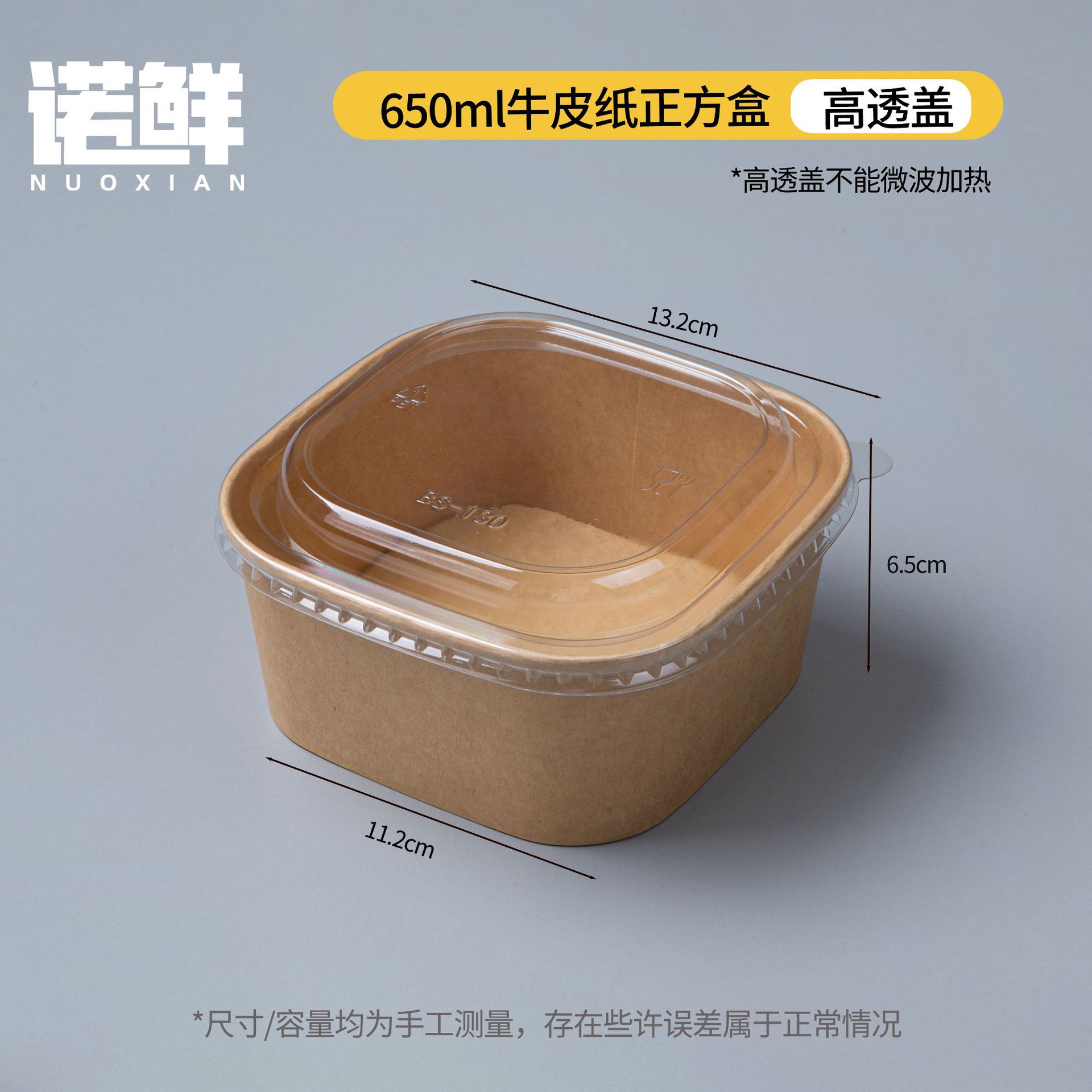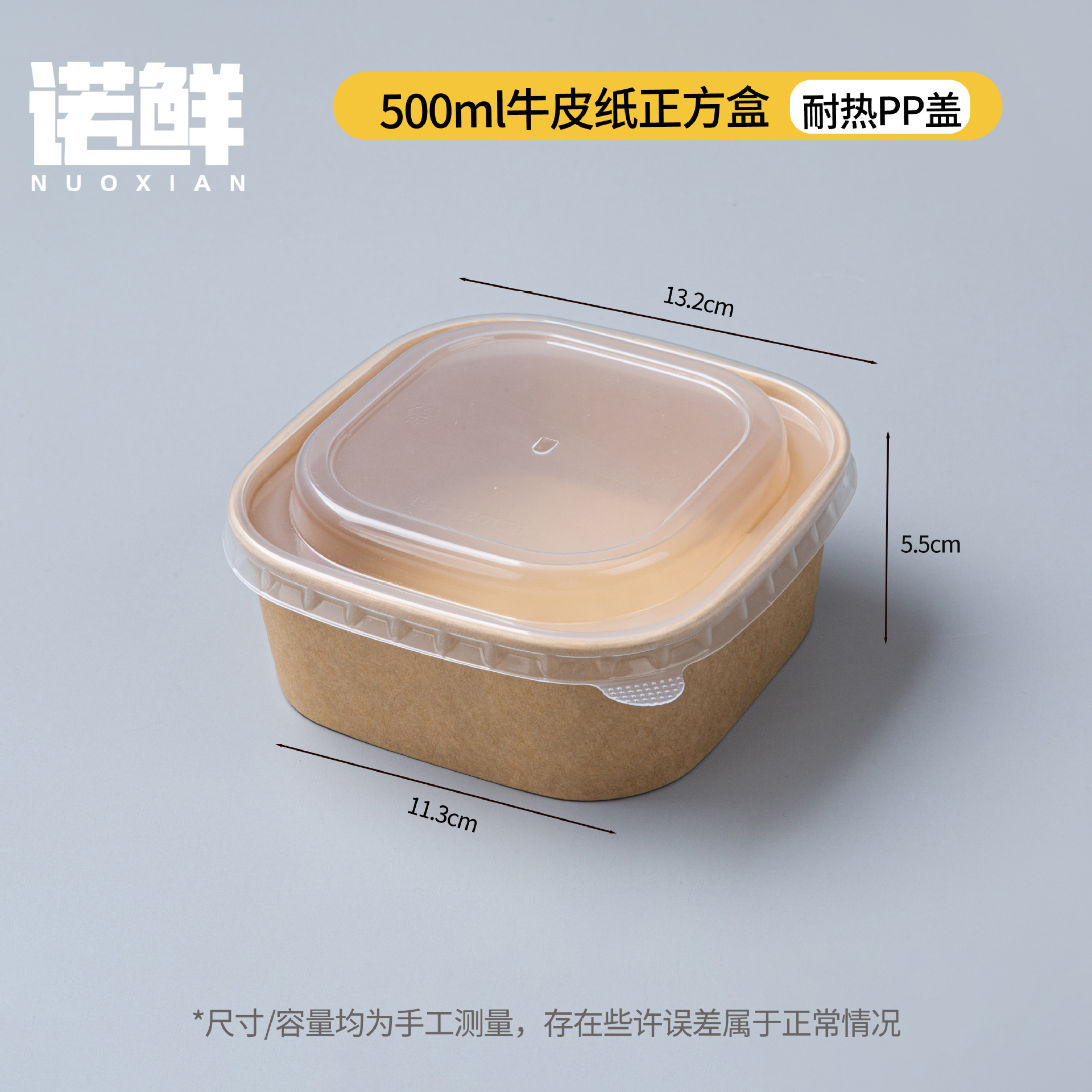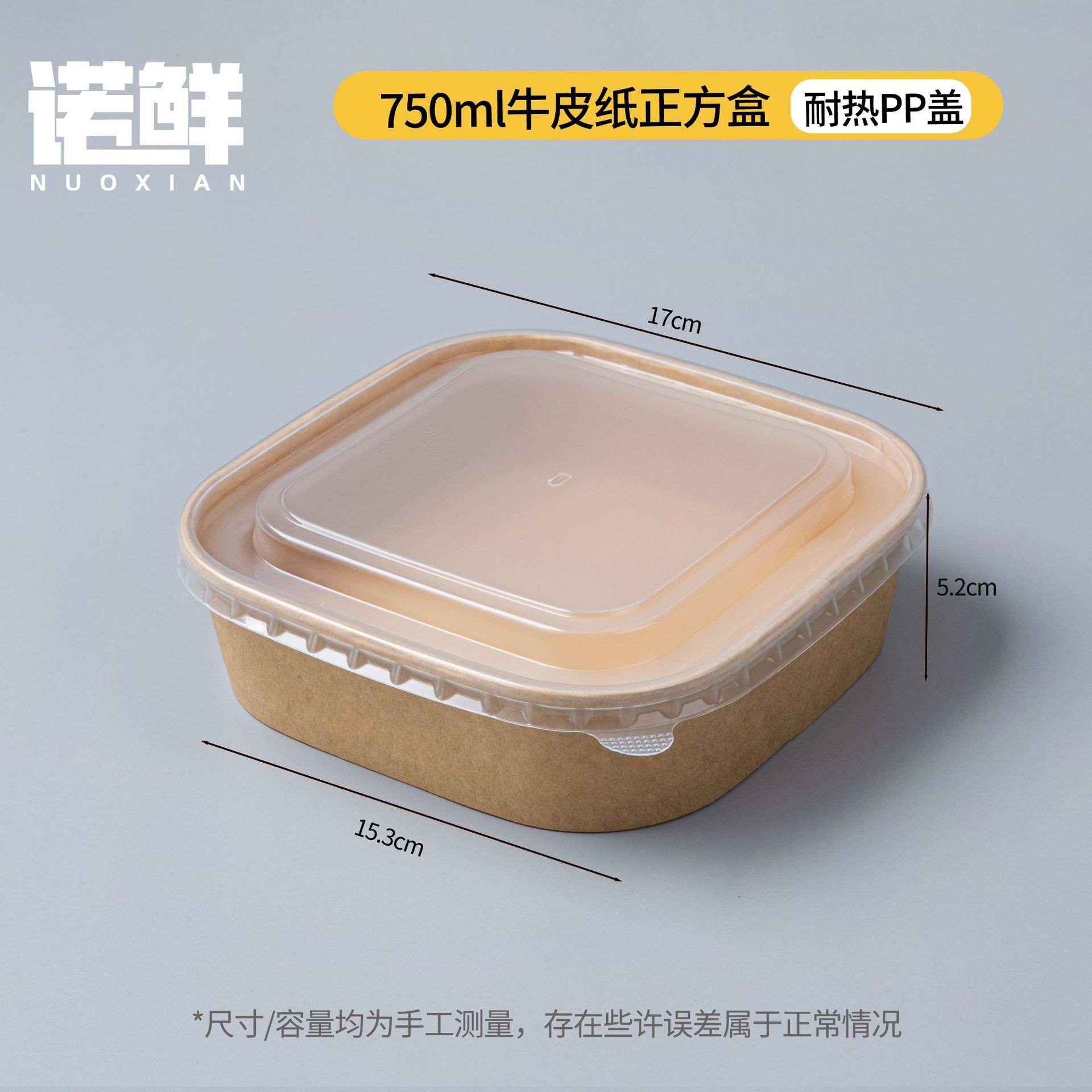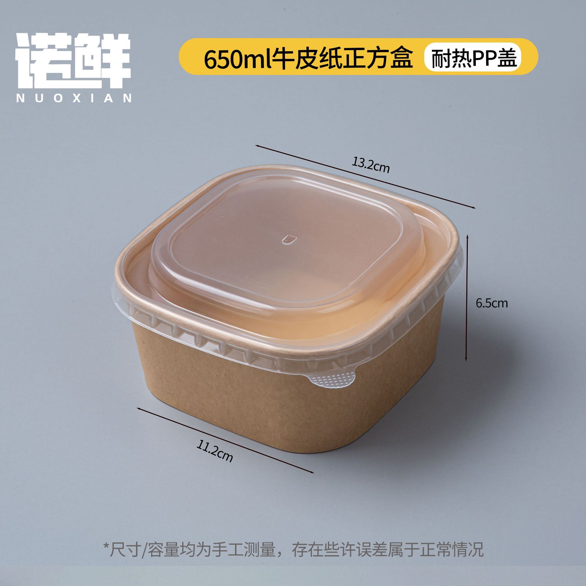 Квадратная коробка натурального цвета 650 мл + полипропиленовая крышка.