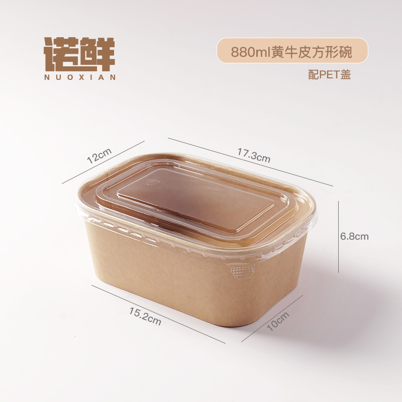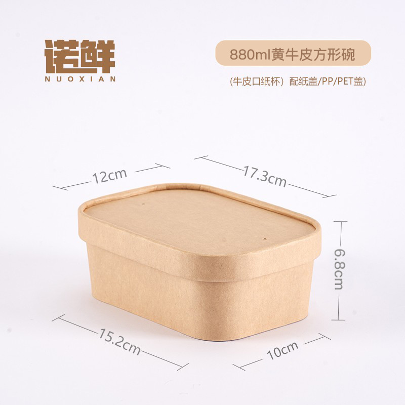 Прямоугольная коробка натурального цвета 880 мл + бумажная крышка