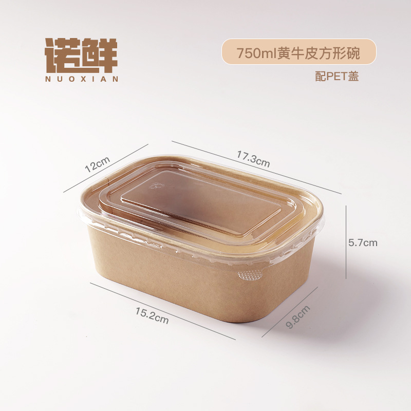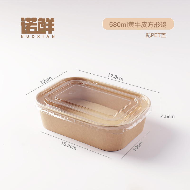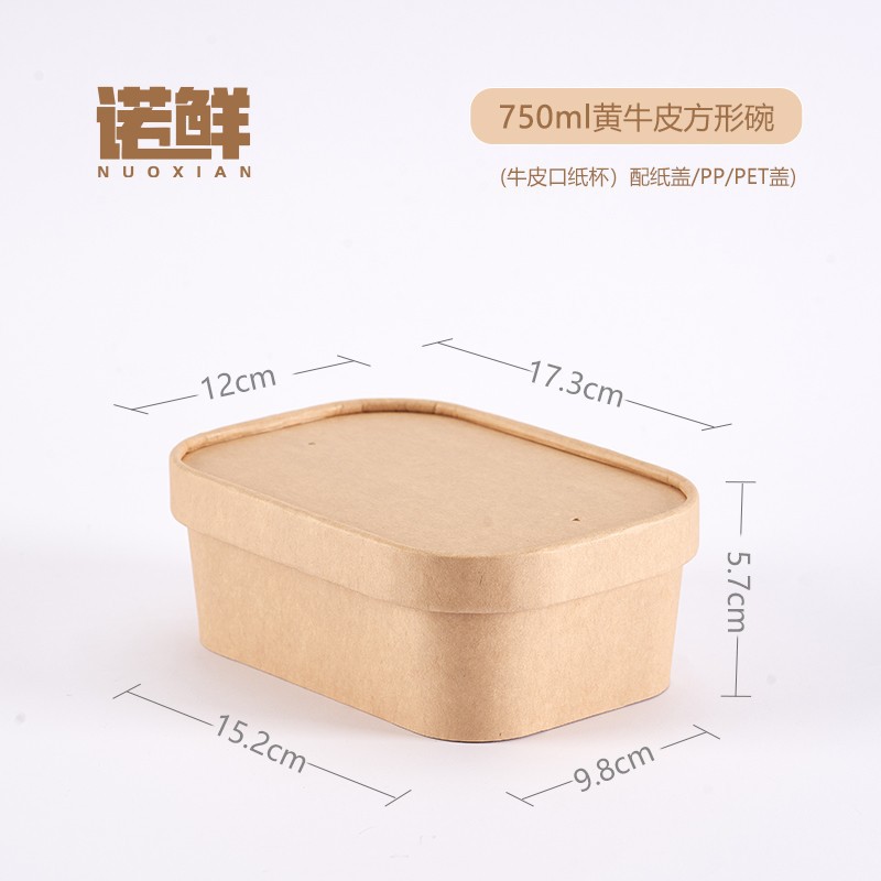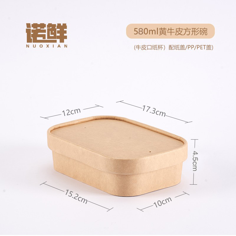 Прямоугольная коробка натурального цвета 580 мл + бумажная крышка