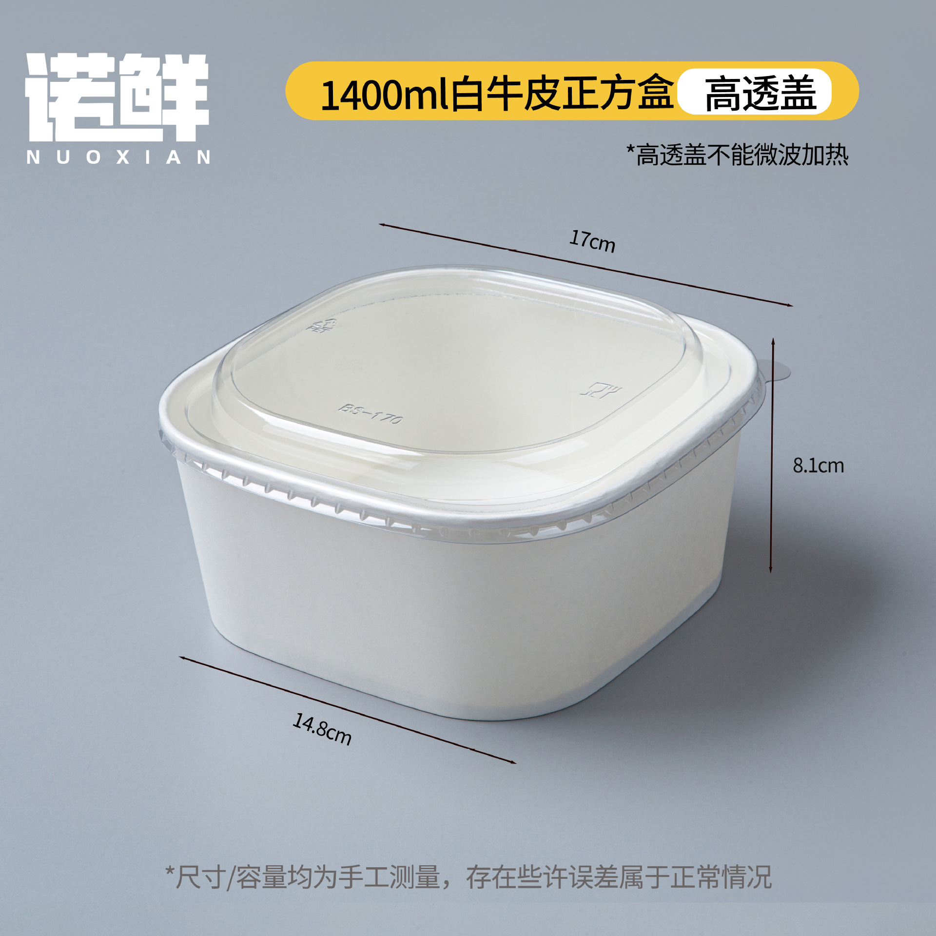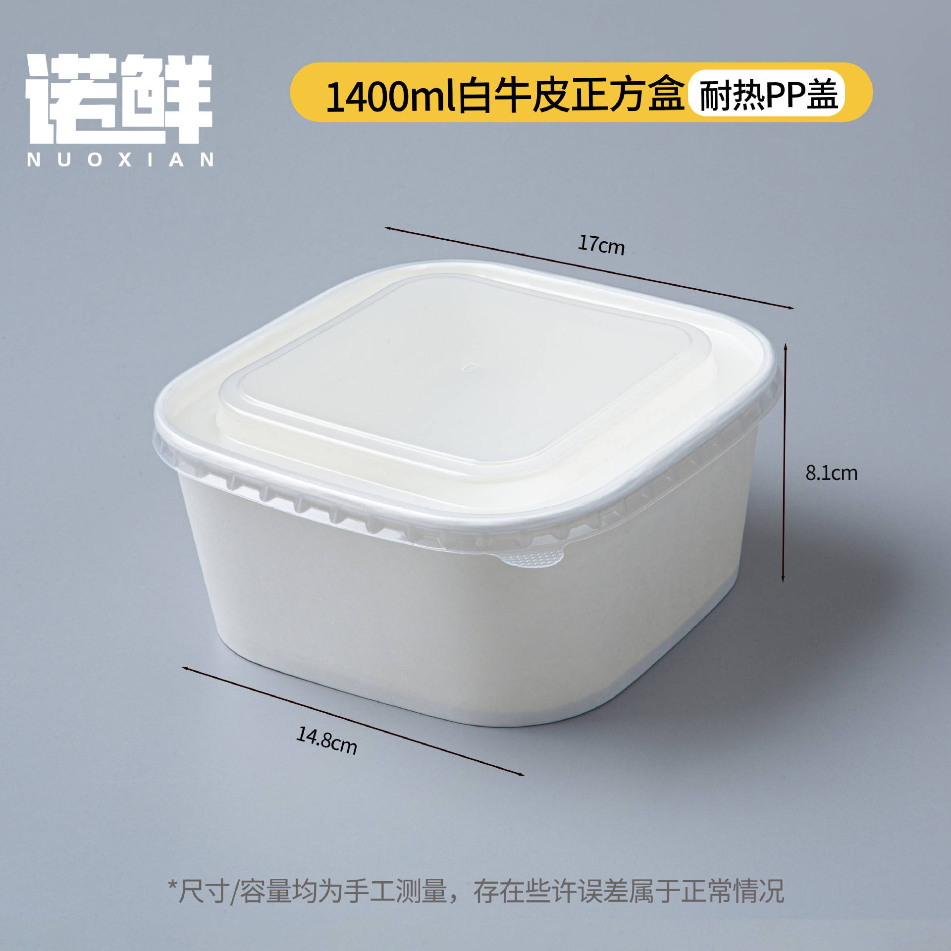 Белая квадратная коробка 1400 мл + полипропиленовая крышка.