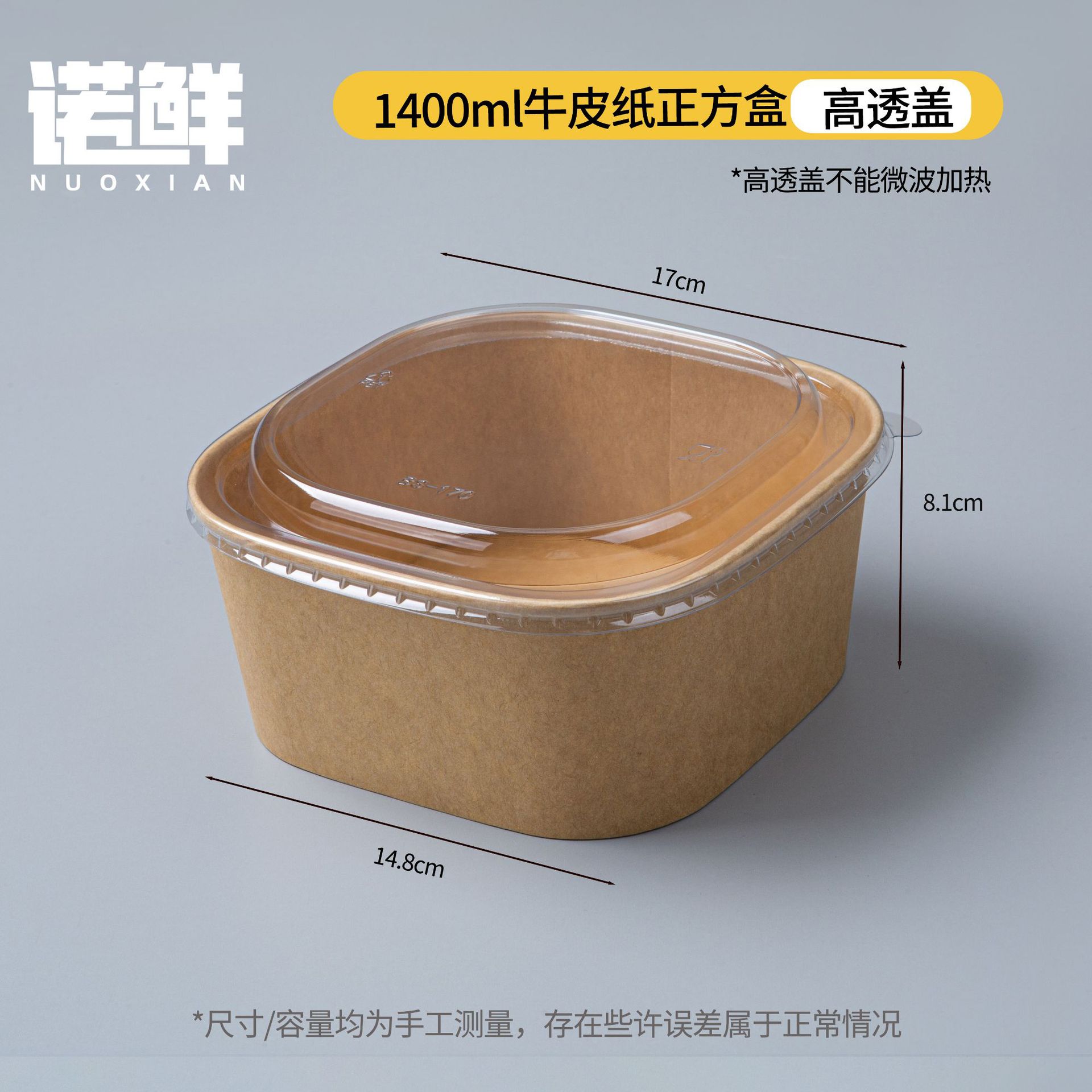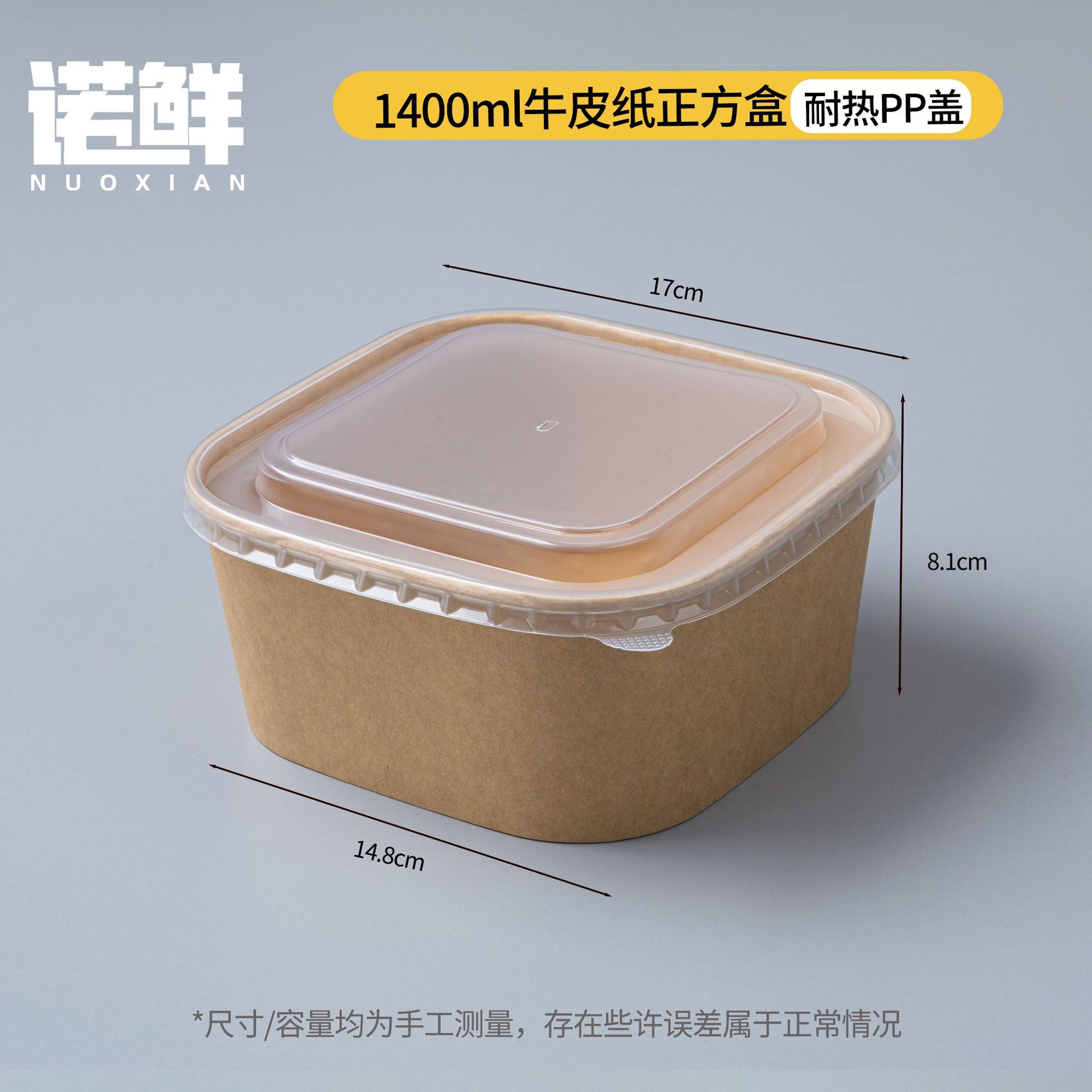 Квадратная коробка натурального цвета 1400 мл + полипропиленовая крышка.