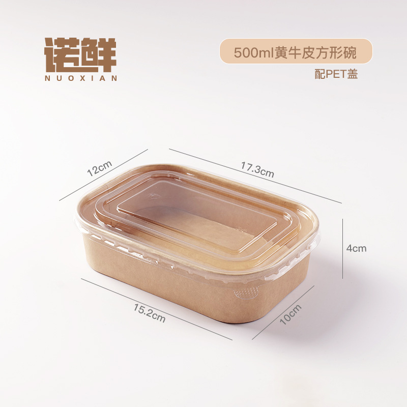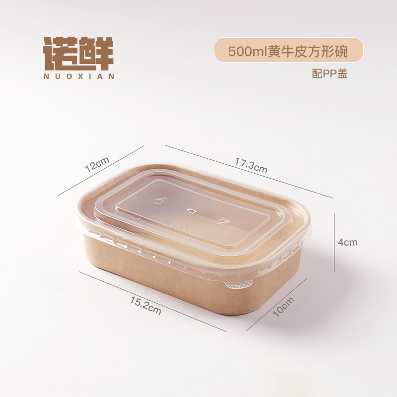 Прямоугольная коробка натурального цвета 500 мл + крышка из полипропилена.