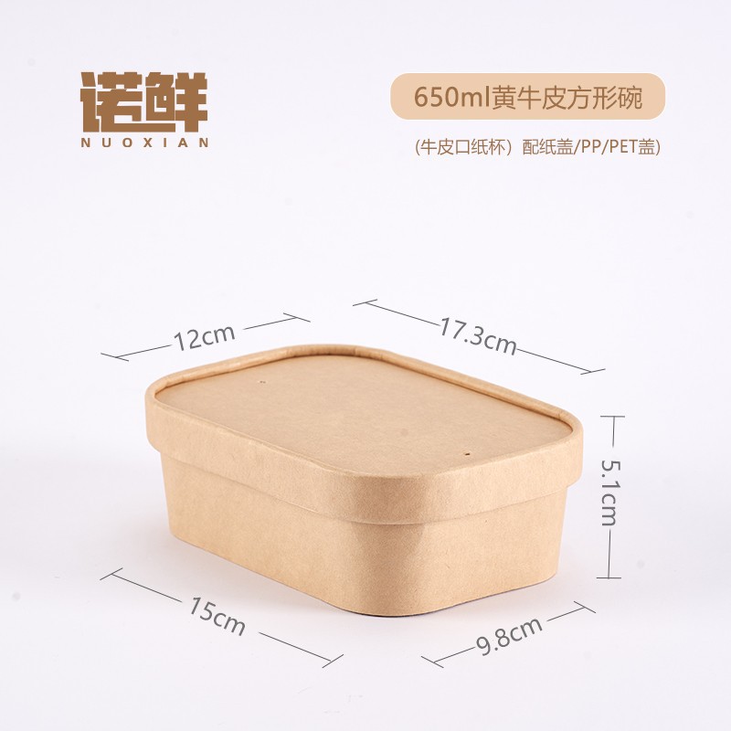 Прямоугольная коробка натурального цвета 650 мл + бумажная крышка