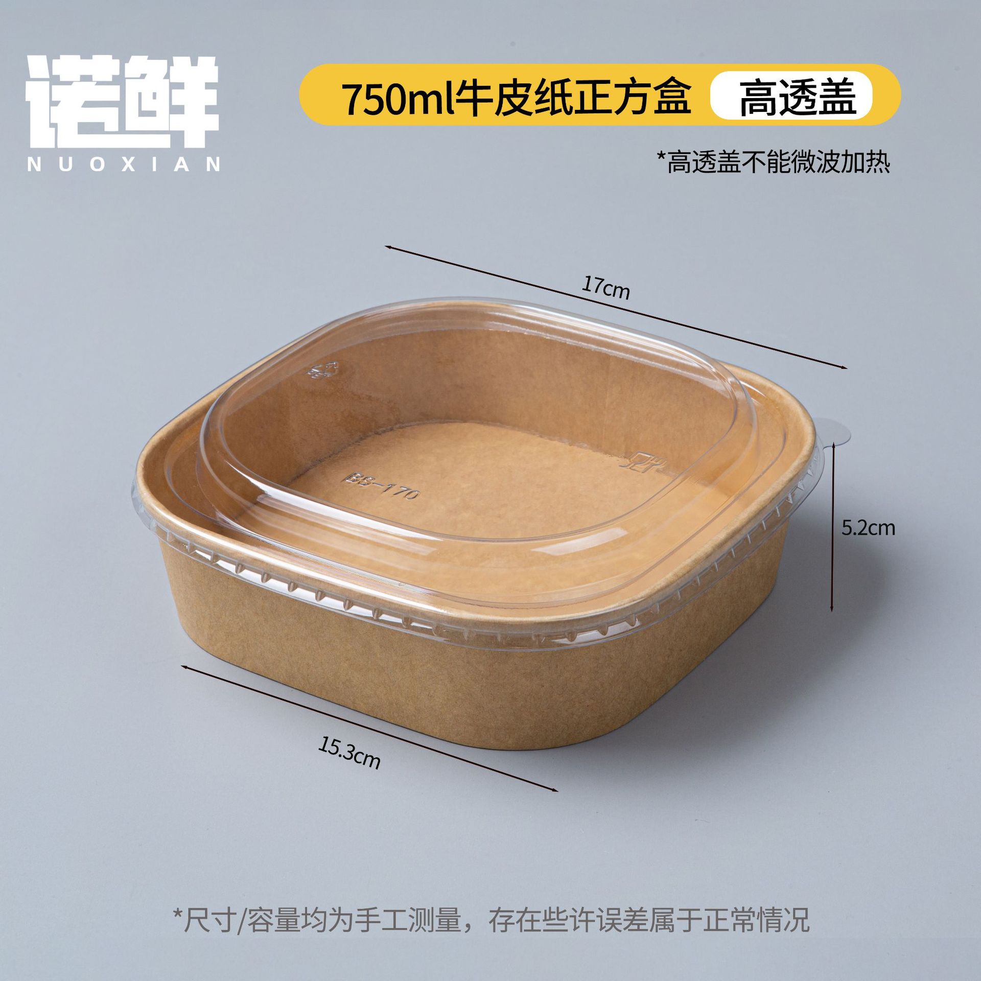 Квадратная коробка емкостью 750 мл натурального цвета + крышка из полипропилена.