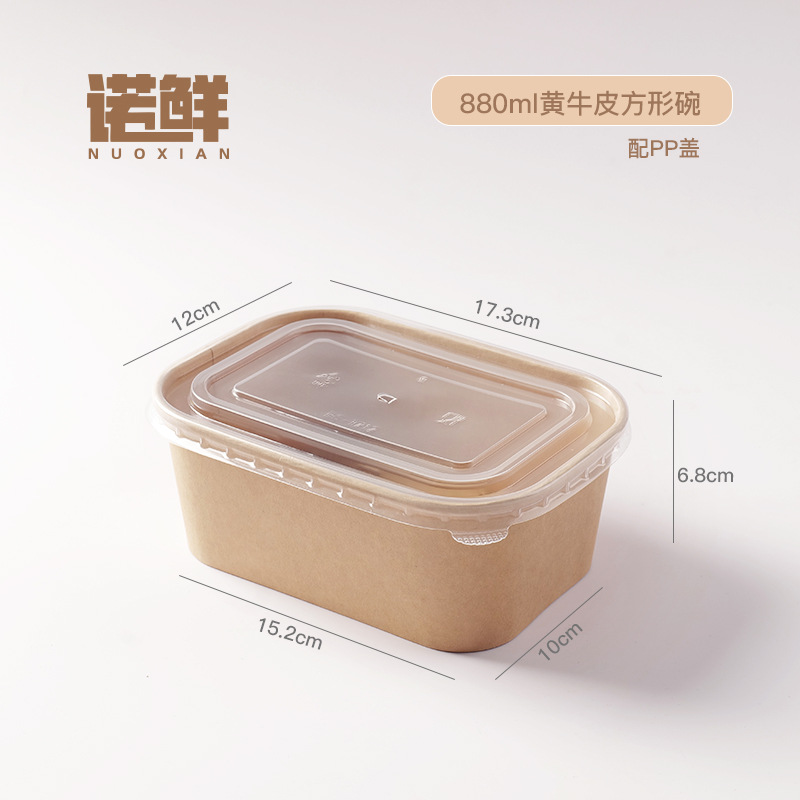 Прямоугольная коробка натурального цвета 880 мл + крышка из полипропилена.