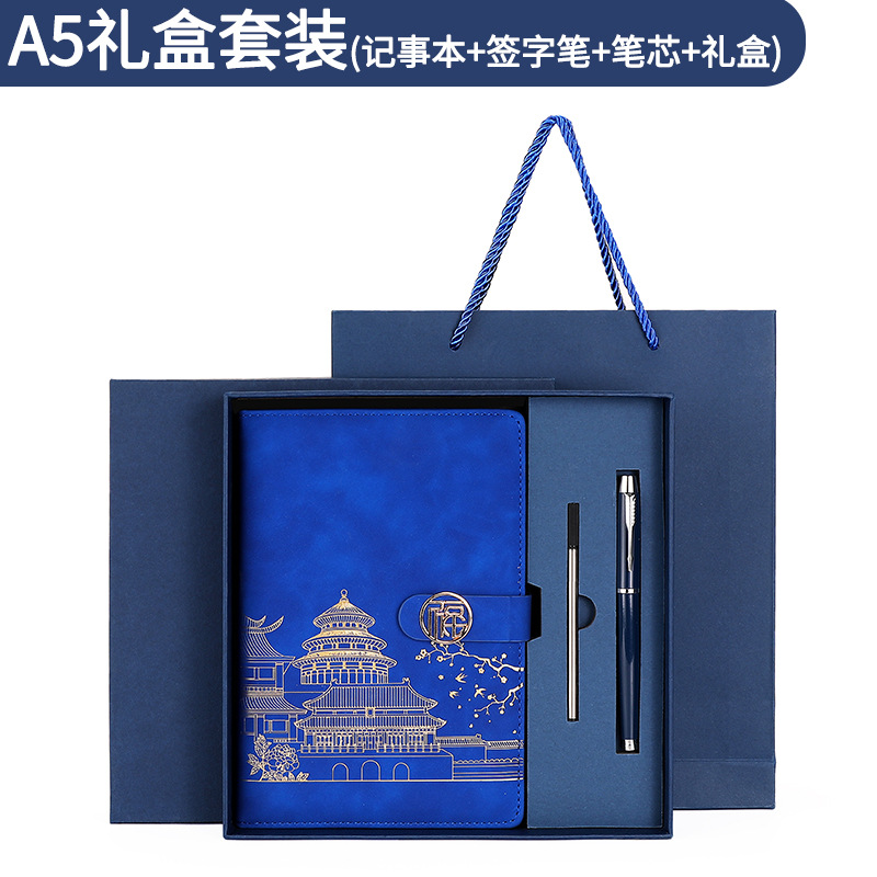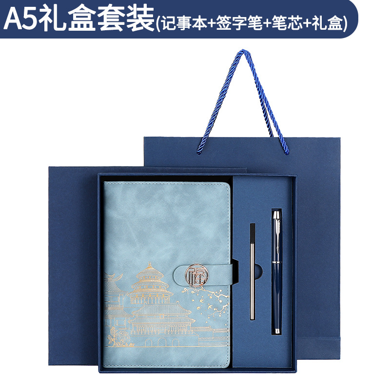 A5-gift коробка с пряжкой в национальном стиле темно-синяя