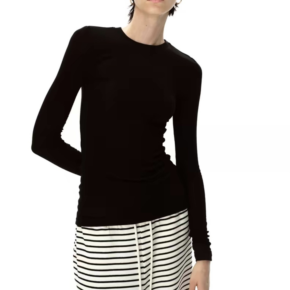 Главная страница > Тонкая шерстяная Tsi с круглым вырезом и высокой пулей с длинными рукавами, тонкая рубашка с тонким вырезом для женщин 2024 осень новая