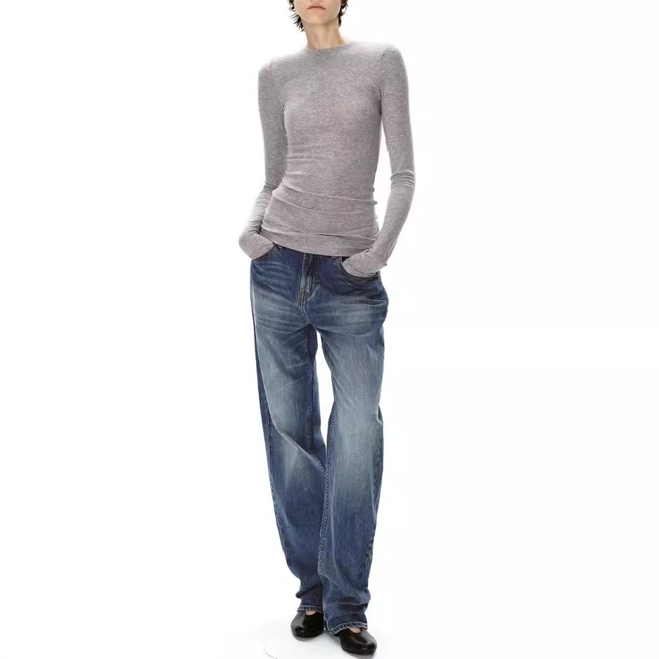 Тонкая шерстяная Tsi с круглым вырезом и высокой пулей с длинными рукавами, тонкая рубашка с тонким вырезом для женщин 2024 осень новая