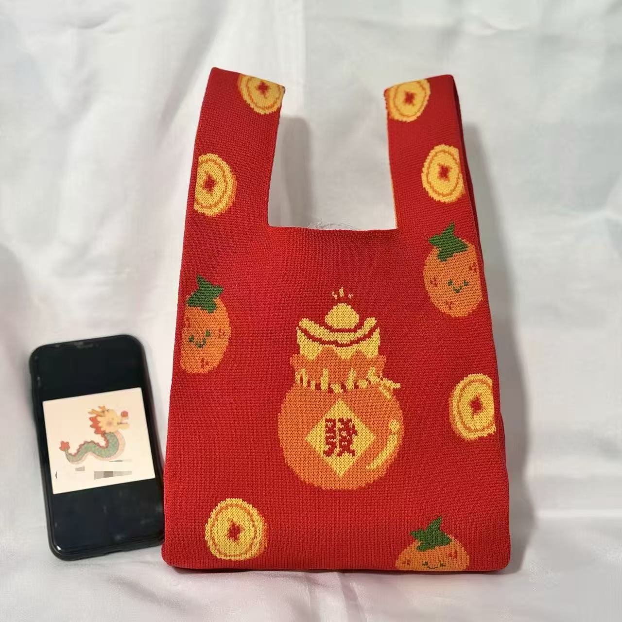 Главная страница > Вязаная сумка, подарочная сумка-тоут, сумка с кроликом, большая вместительная подарочная сумка, маленькая сумка на запястье