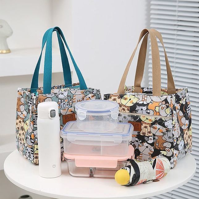 Главная страница > Толстая холст студенческая сумка для бенто Корейский стиль большой емкости ручной ланч-бокс сумка из алюминиевой фольги