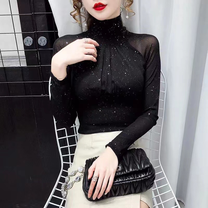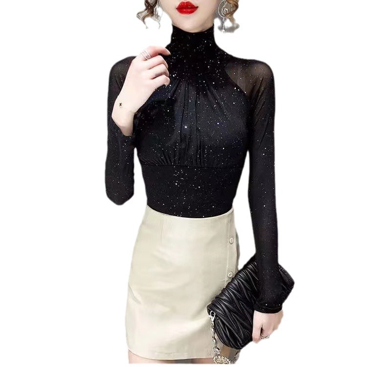 Главная страница > Сетчатый кружевной топ Высококачественная сексуальная французская Базовая рубашка в стиле ретро Плотная маленькая рубашка в западном стиле