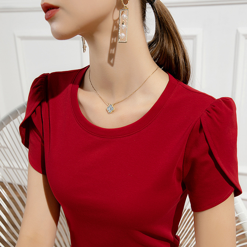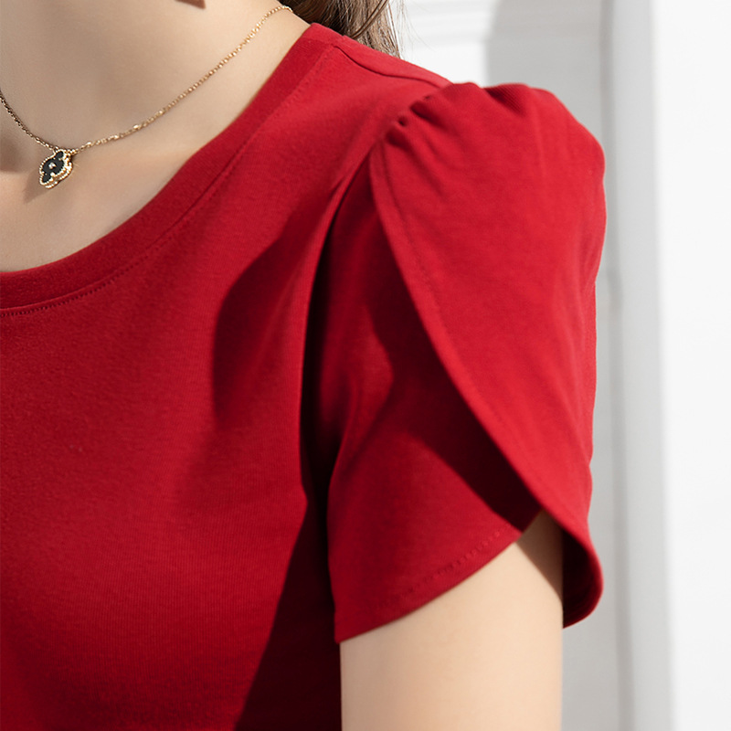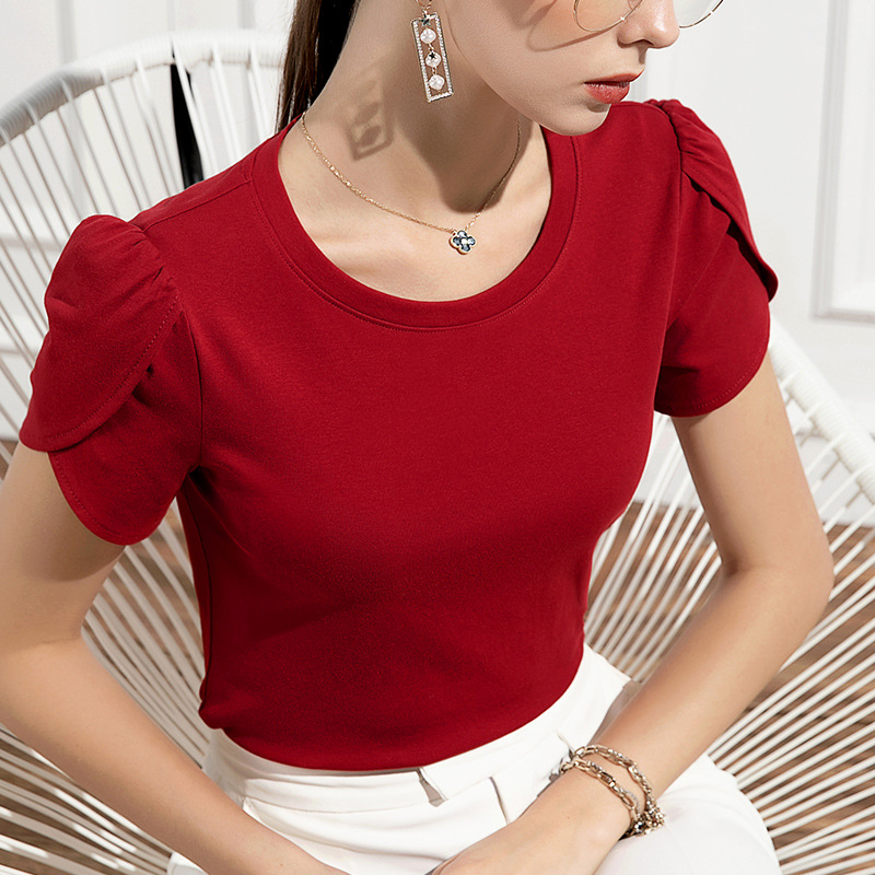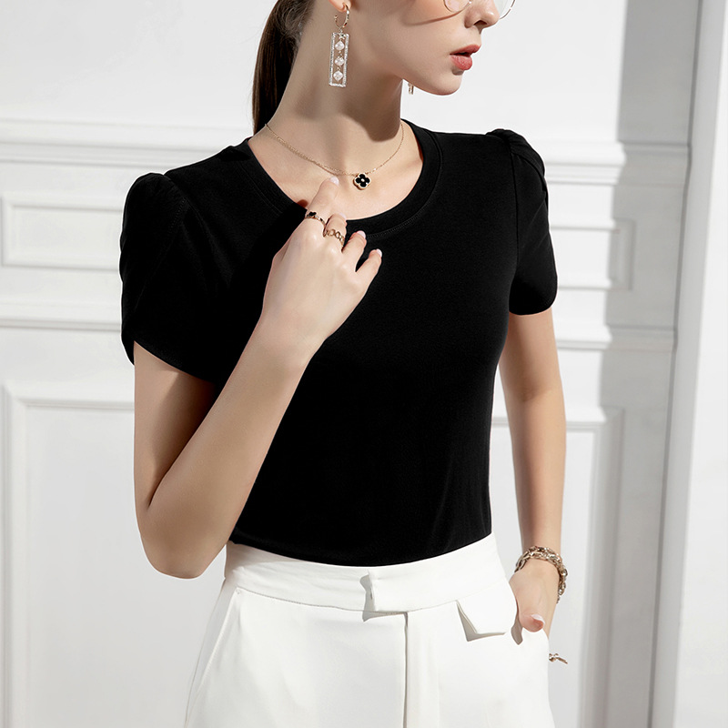 Главная страница > Новая летняя футболка с рукавами принцессы, Женская приталенная футболка с короткими рукавами, нишевый дизайн, чистый хлопковый топ с круглым вырезом
