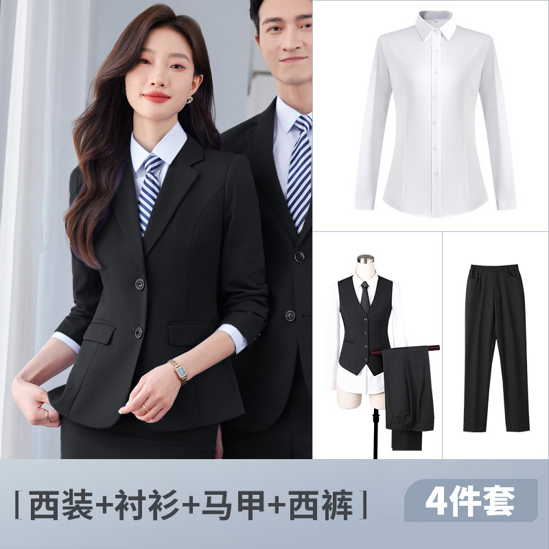 Женский черный костюм + белая рубашка + жилет + брюки