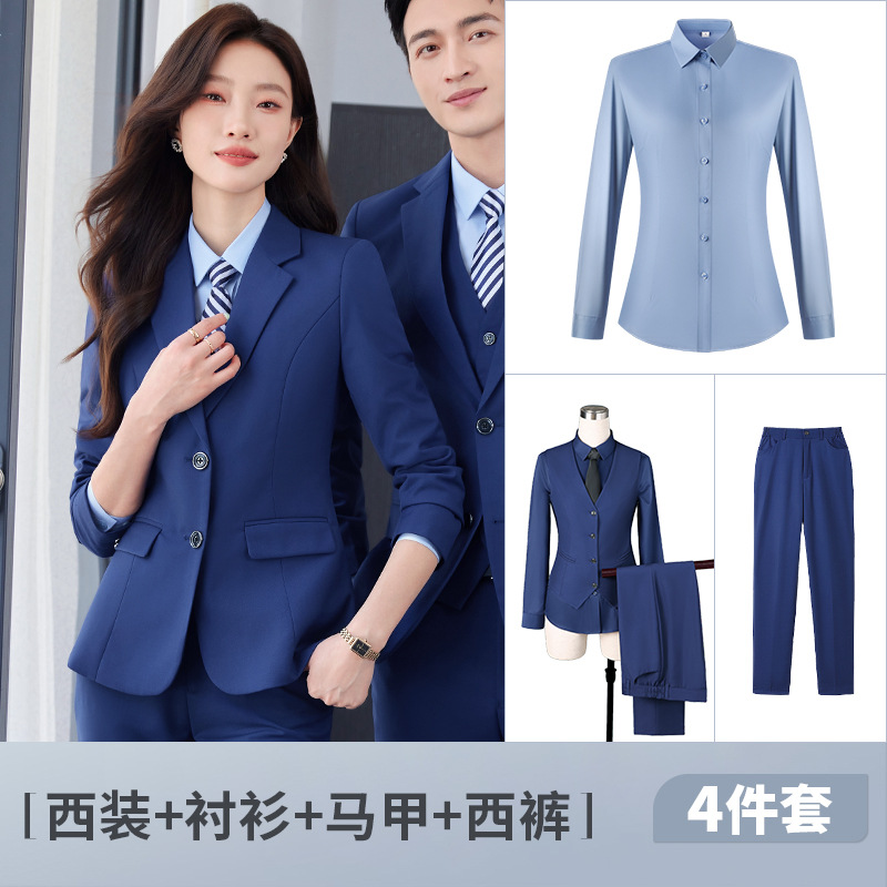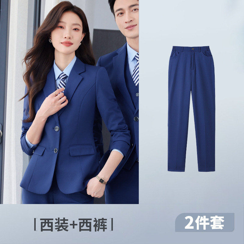 Женский костюм королевского синего цвета + голубая рубашка + жилет + брюки