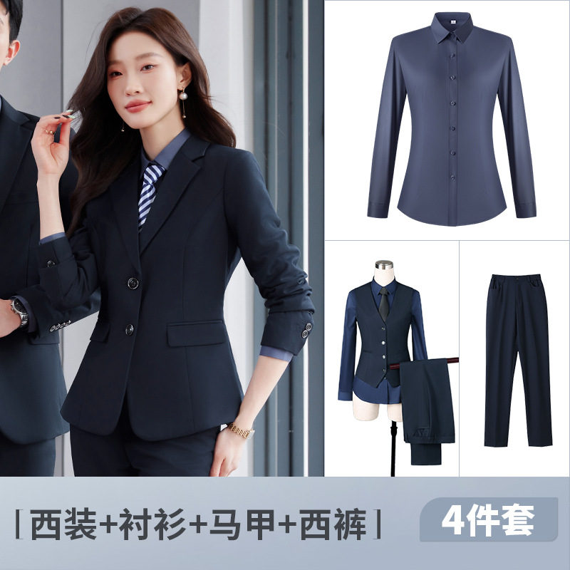 Женский темно-синий костюм + темно-серая рубашка + жилет + брюки