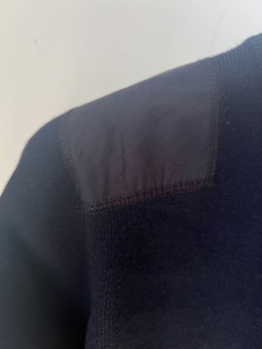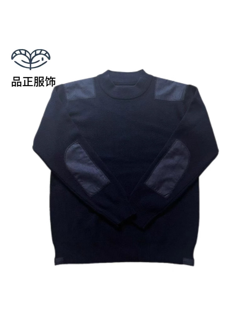 Темно-синий зимний мужской свитер из 100% шерсти с круглым вырезом для повседневной носки и профессиональной рабочей одежды с мерсеризованной отделкой.
