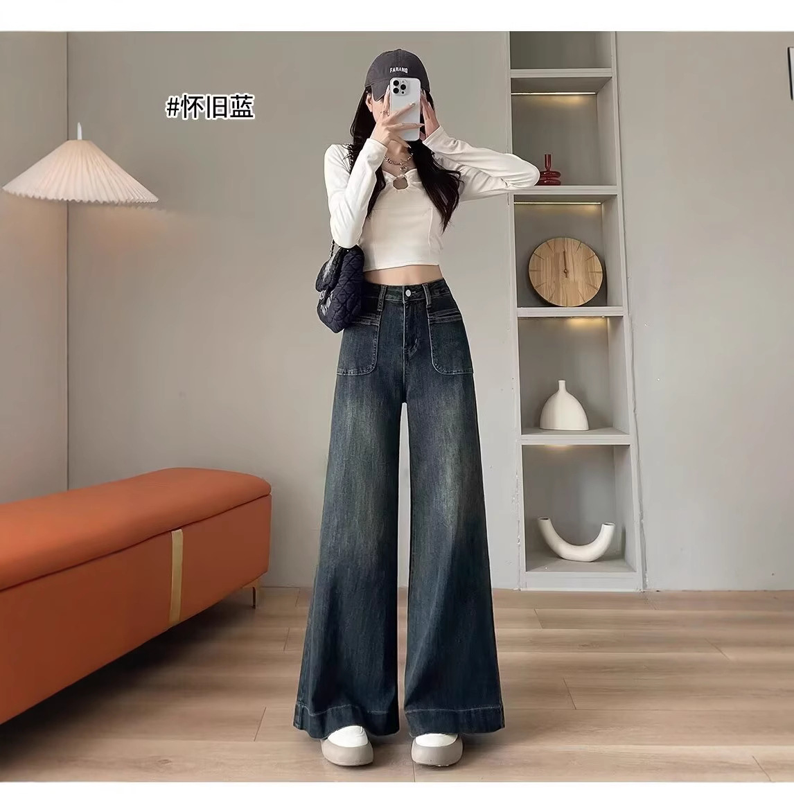 Главная страница > Американские ретро джинсы большие рога женские весна и осень лето тонкие новые тонкие с высокой талией тонкие свободные повседневные широкие брюки