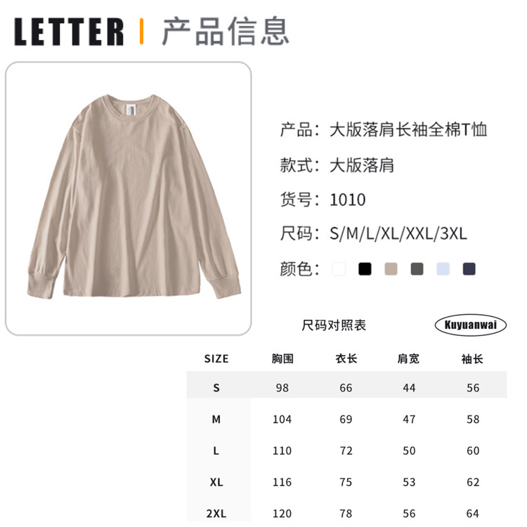 AG240g Мужская футболка с круглым вырезом и длинным рукавом из чистого хлопка, большая серия на плечо, американская свободная универсальная базовая рубашка, модная мужская Национальная модная