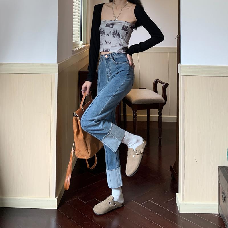 Главная страница > Винтажные синие прямые джинсы для женщин, осень 2025, новые свободные широкие брюки с высокой талией и длиной до пола