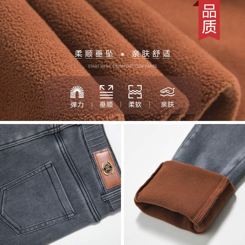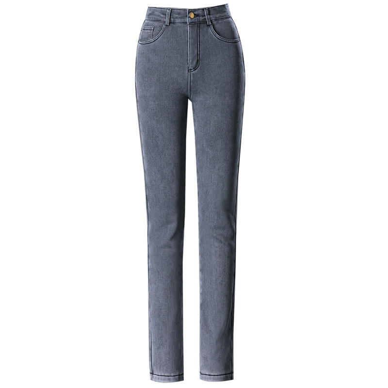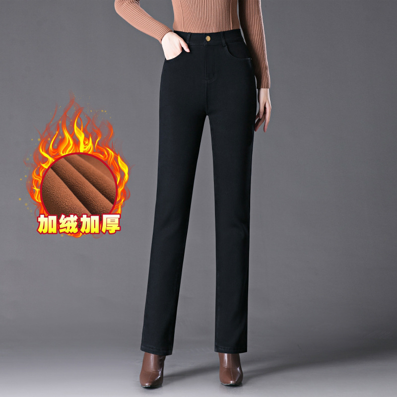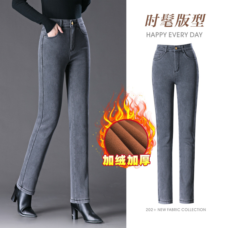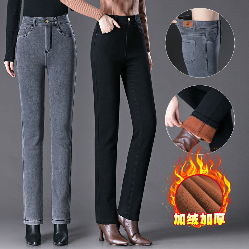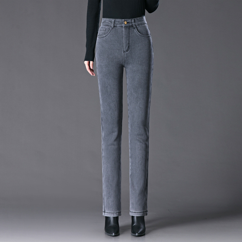 Главная страница > 2023 Зимние новые дымчато-серые джинсы женские утолщенные эластичные прямые брюки на флисовой подкладке брюки для мам с высокой талией