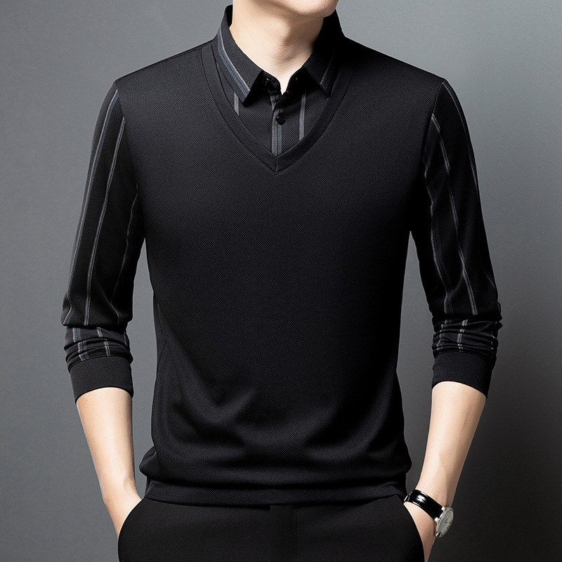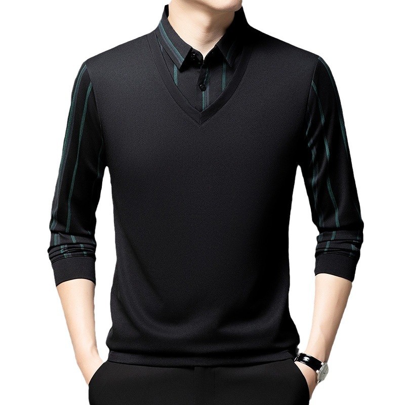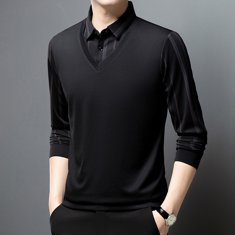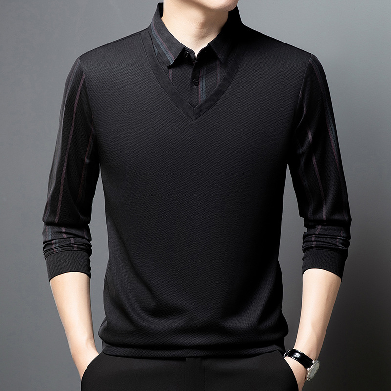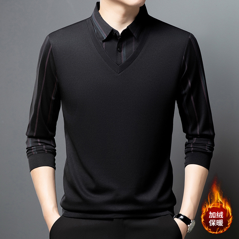 Главная страница > Мужская модная рубашка поло из двух предметов с длинными рукавами, мужская футболка на осень и зиму, новый повседневный комплект из двух предметов для мужчин среднего возраста