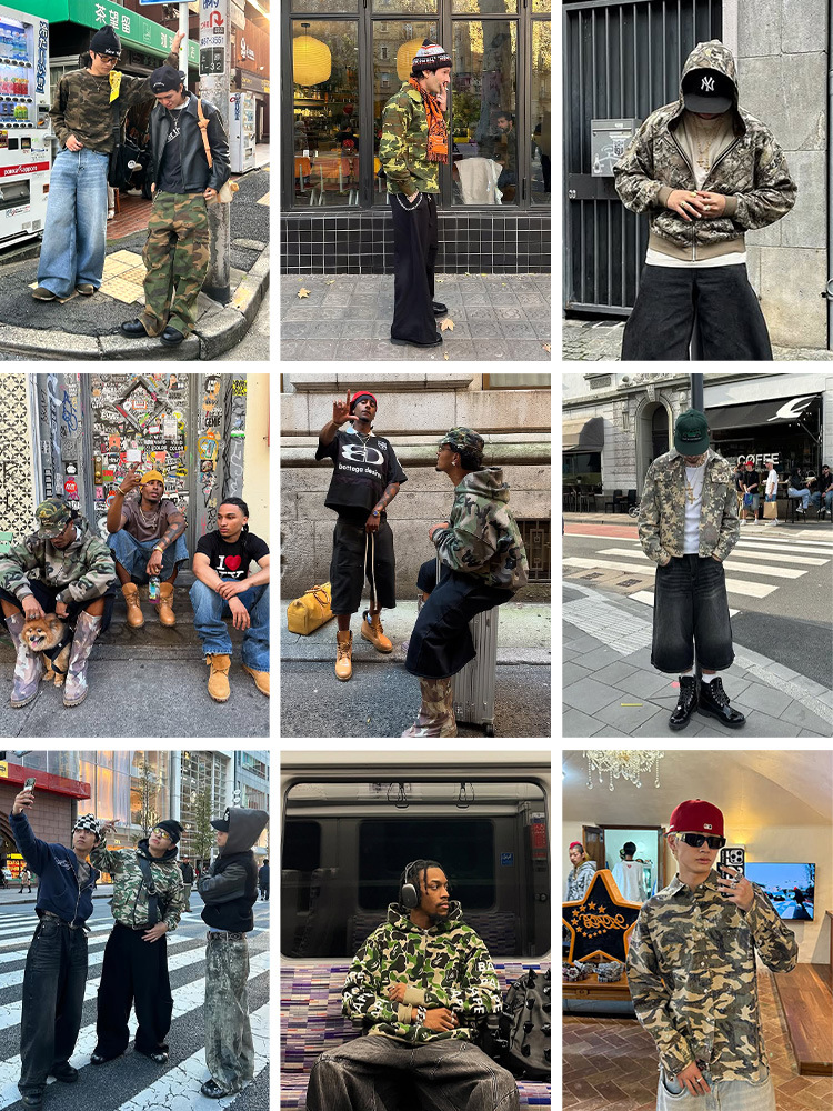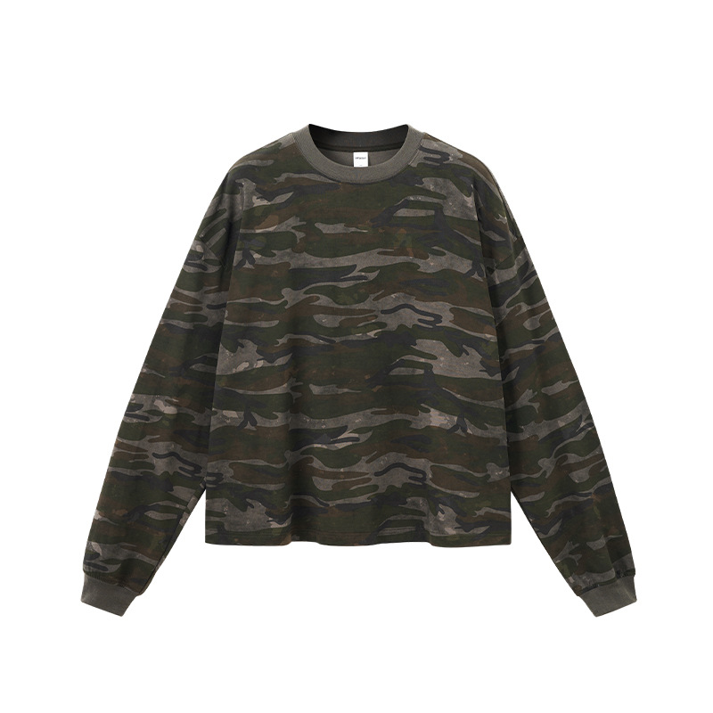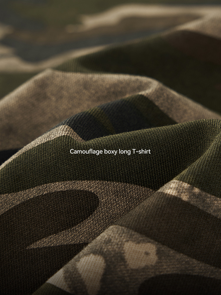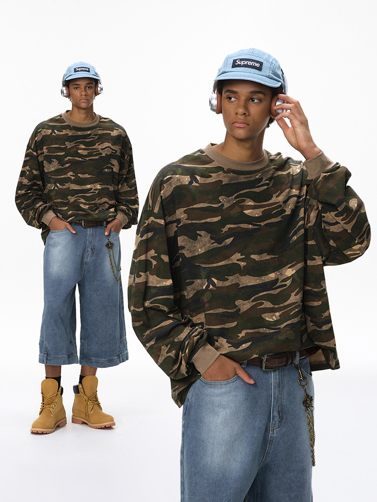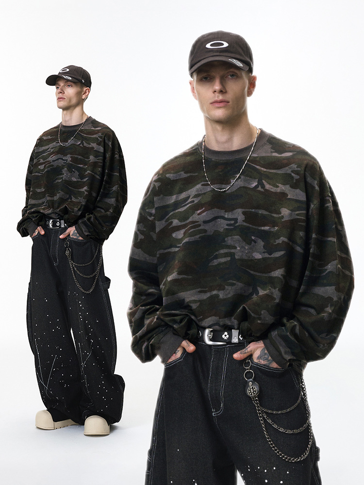 Главная страница > Мужская одежда Jie Zhan | Камуфляжная свободная футболка с длинными рукавами, новинка осени 25, модная брендовая уличная повседневная универсальная рубашка с круглым вырезом
