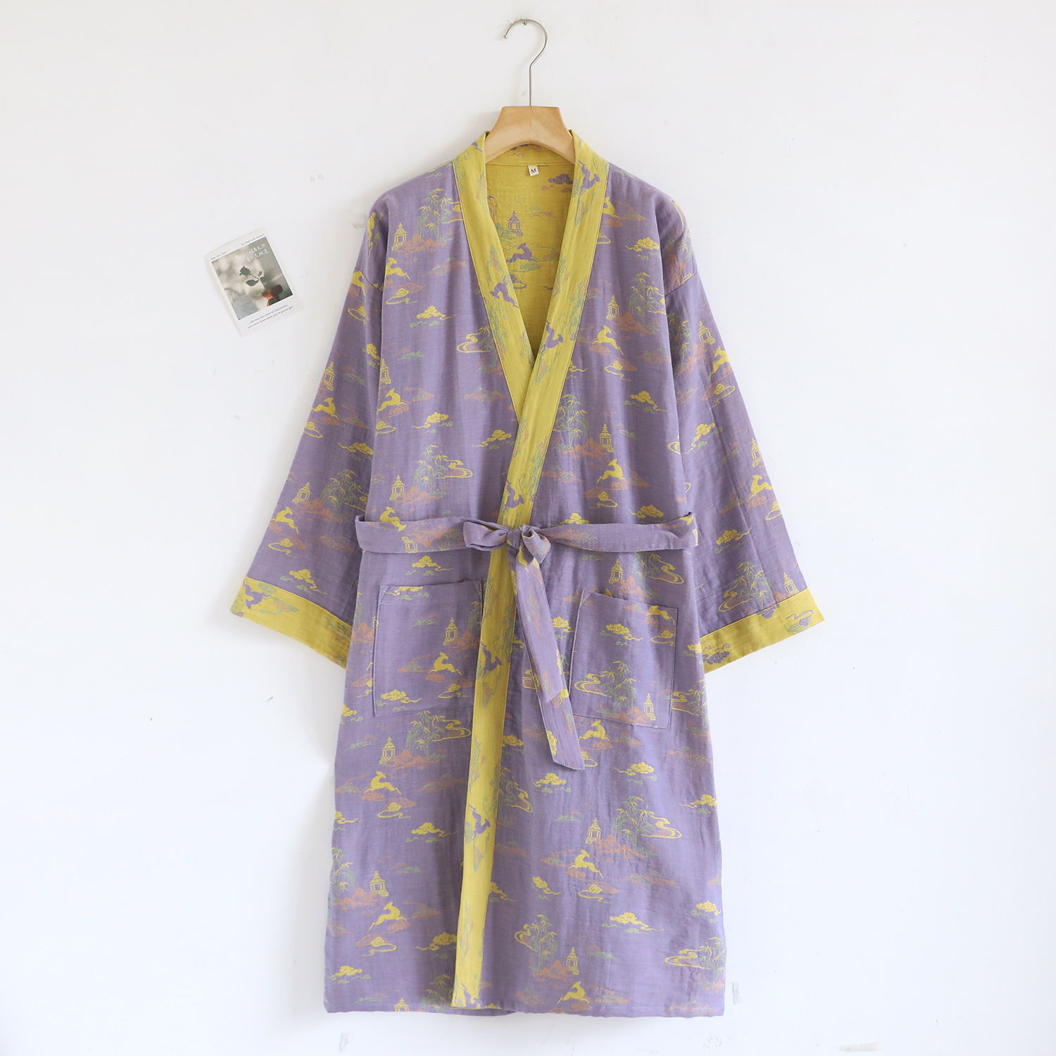 Главная страница > Цветные тканые хлопчатобумажные жаккардовые весенние и летние рукава с длинными рукавами из двухслойной марли в японском стиле кимоно в длинном свободном халате