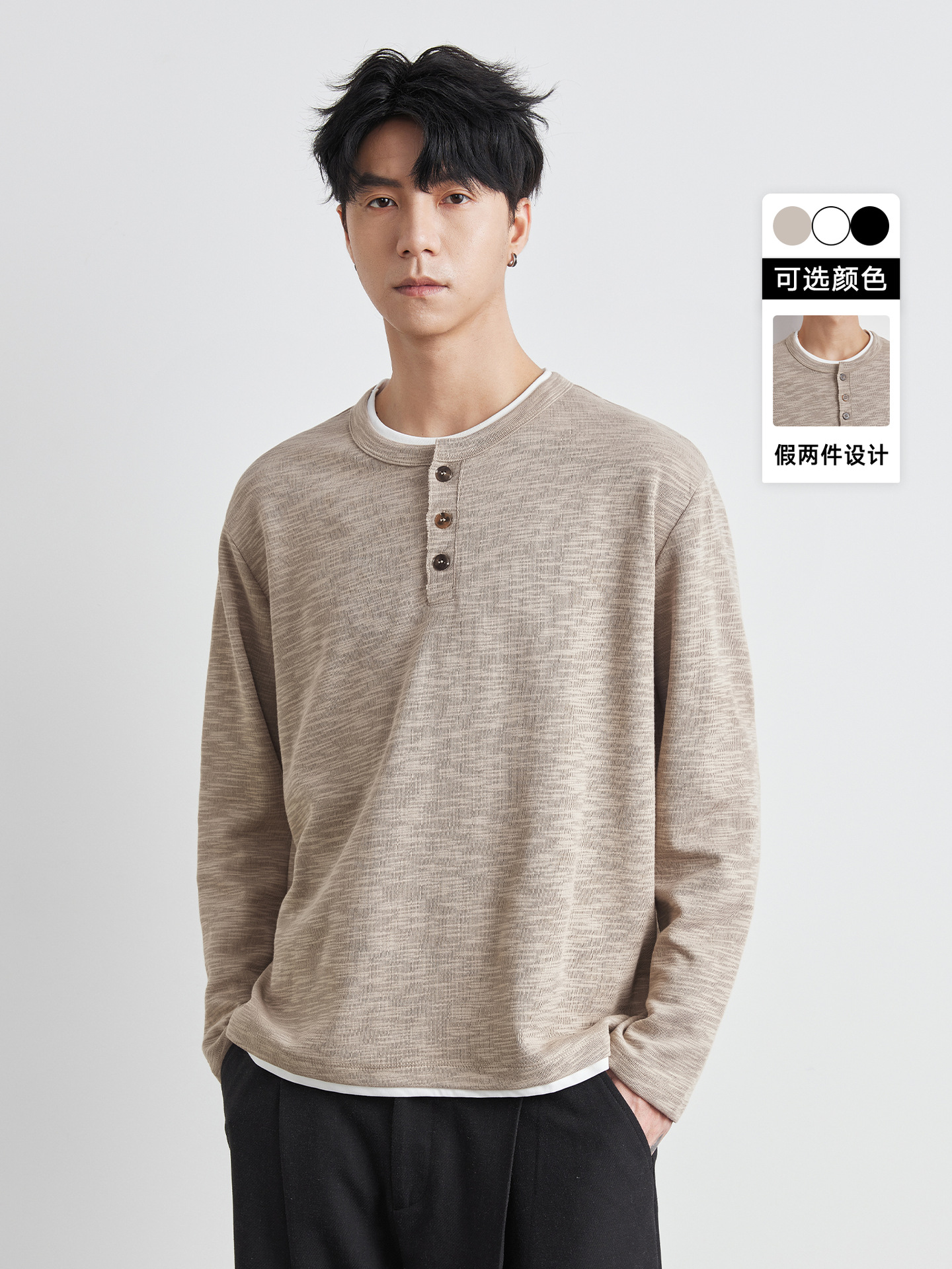 Также только мужская одежда Генри воротник поддельные две футболки с длинными рукавами мужская весна новая американская ретро свободная внутренняя рубашка