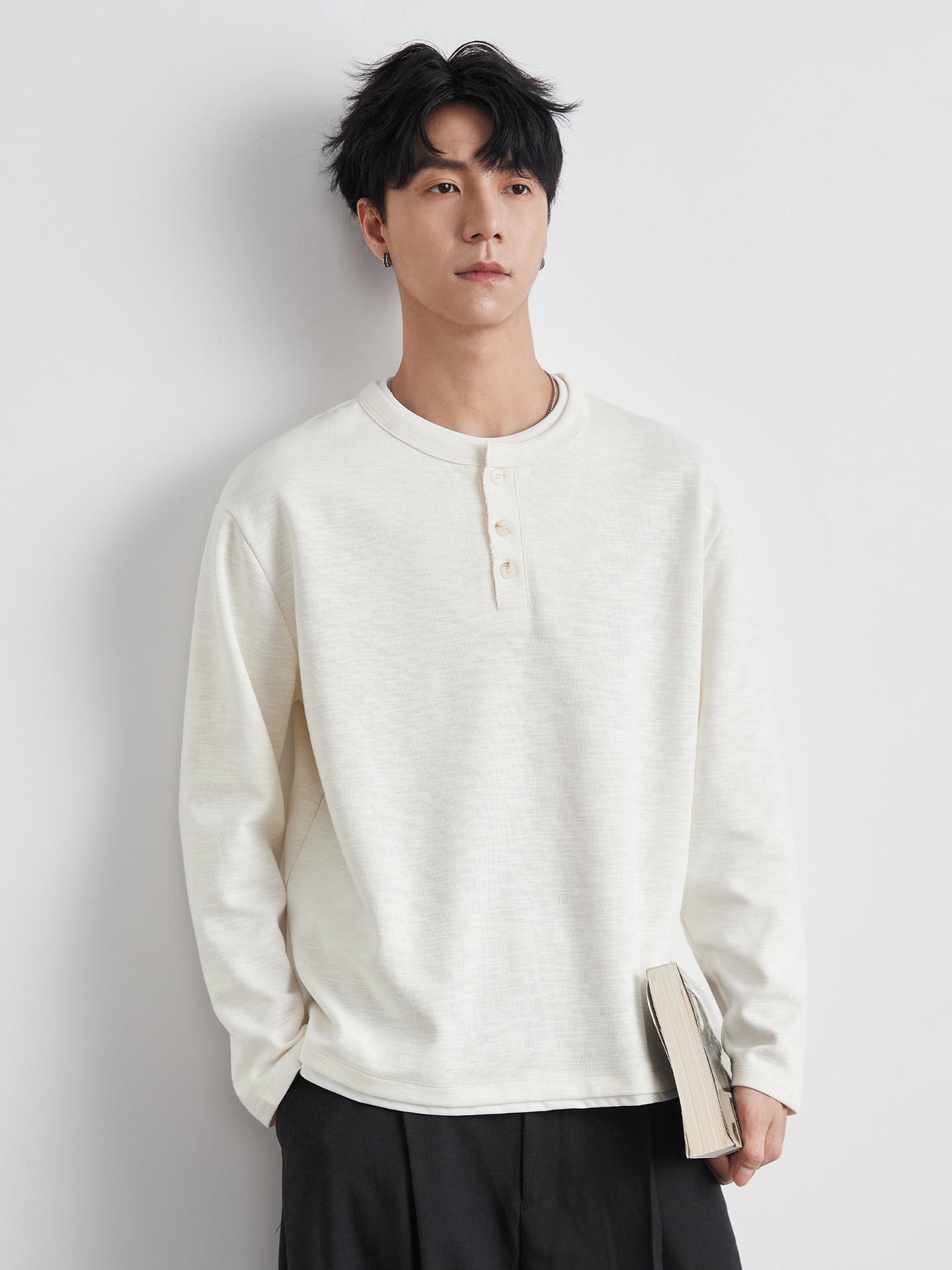 Главная страница > Также только мужская одежда Генри воротник поддельные две футболки с длинными рукавами мужская весна новая американская ретро свободная внутренняя рубашка