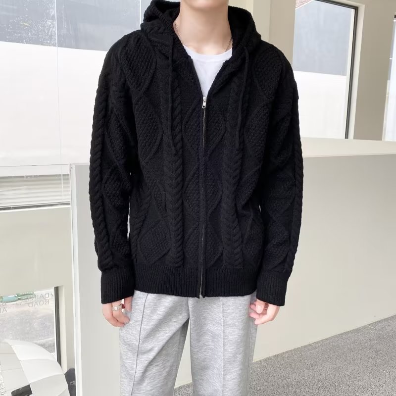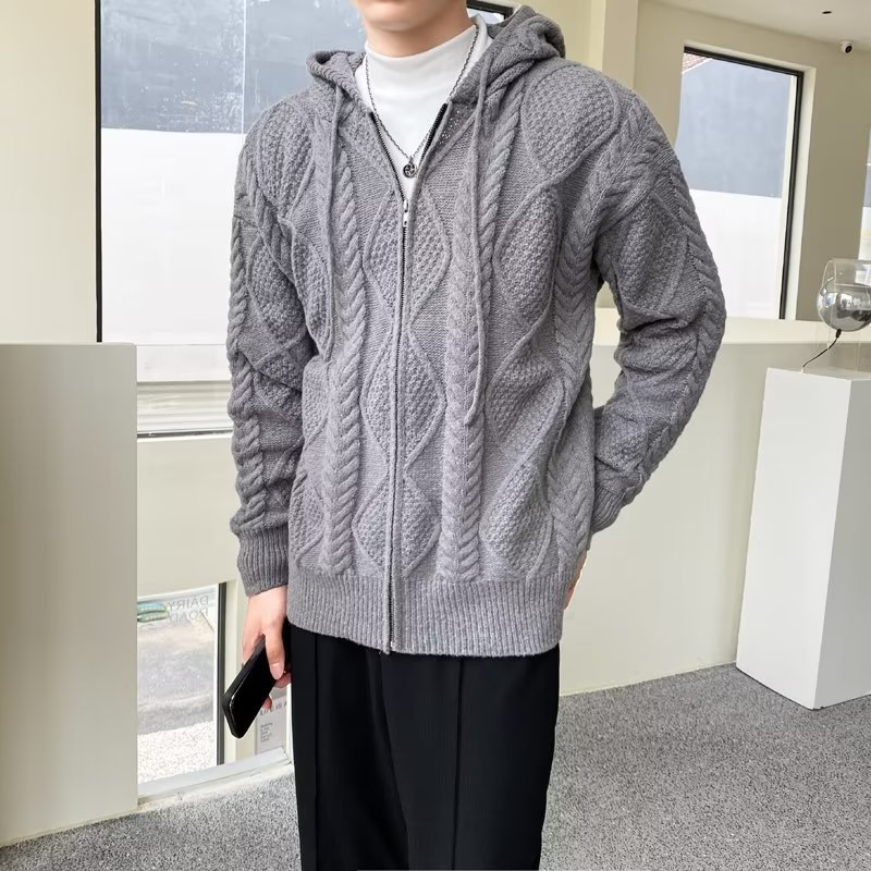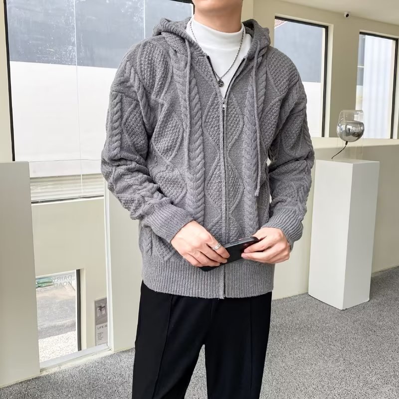 Главная страница > Свитер с капюшоном мужской утолщенный ленивый ветер теплый утолщенный продвинутый смысл свободная осенняя зимняя куртка вязаный кардиган с длинными рукавами