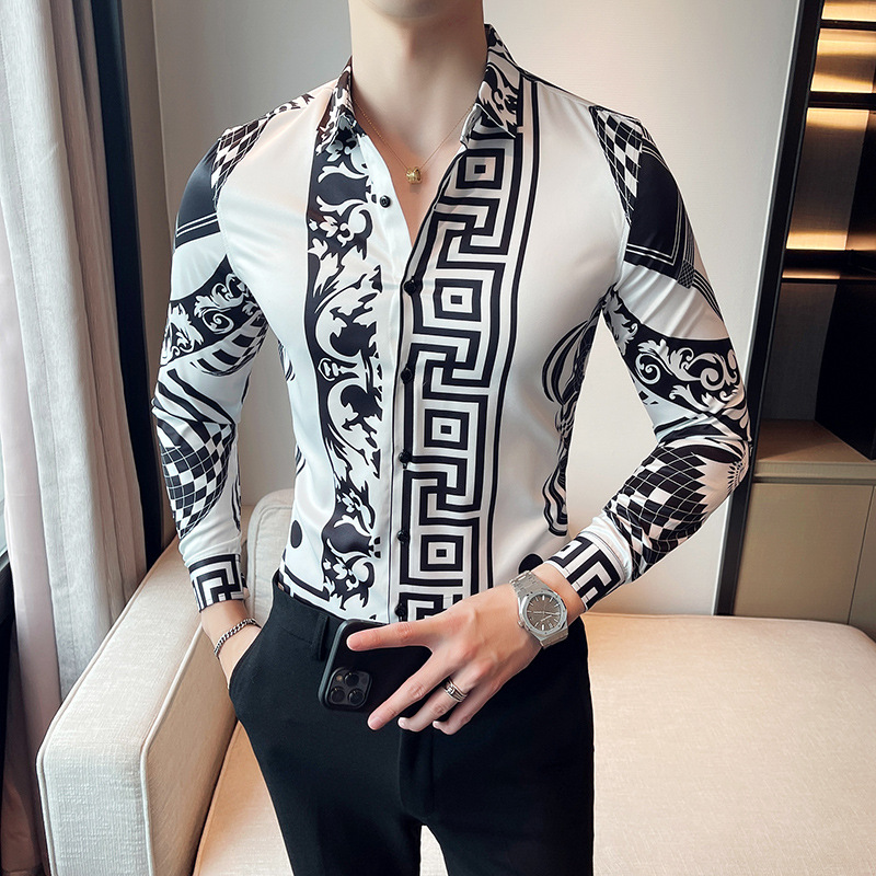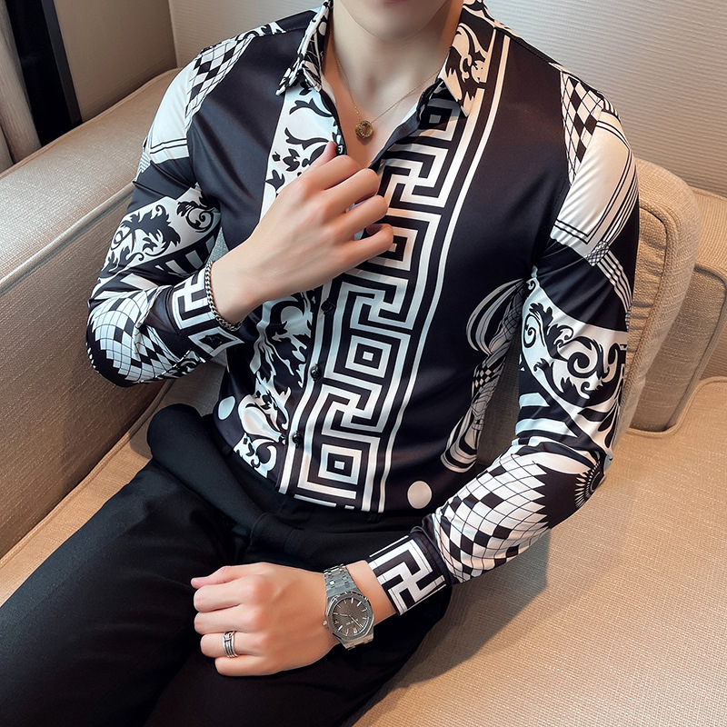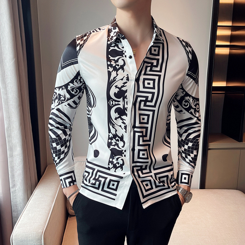 Главная страница > Новая рубашка Европейская и американская мода Мужская Модная брендовая рубашка с принтом Мужская британская трансграничная рубашка с длинным рукавом 2704