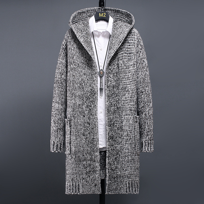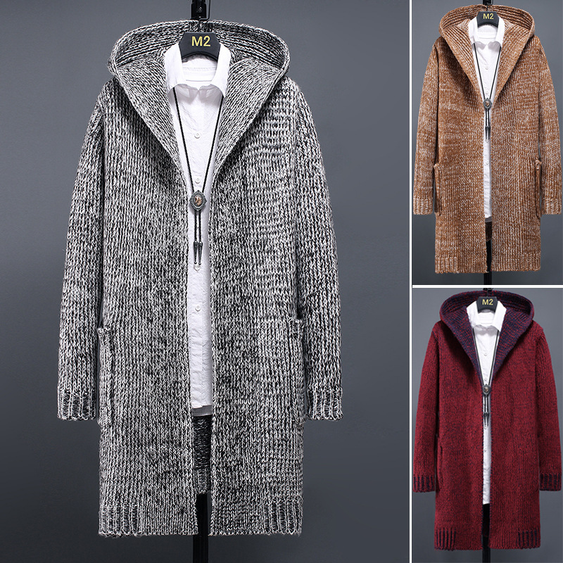 Главная страница > 2021 Зимний новый мужской свободный вязаный кардиган с капюшоном, Повседневный свитер, пальто, длинная Повседневная ветровка
