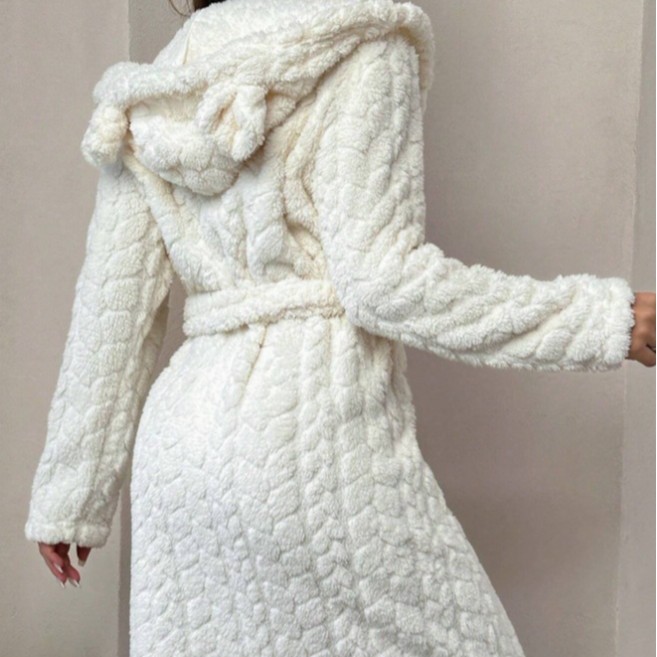 Главная страница > Женский зимний халат средней длины из кораллового флиса с капюшоном и ушками, утепленный, для дома, с бантом-значком, теплый, для купания