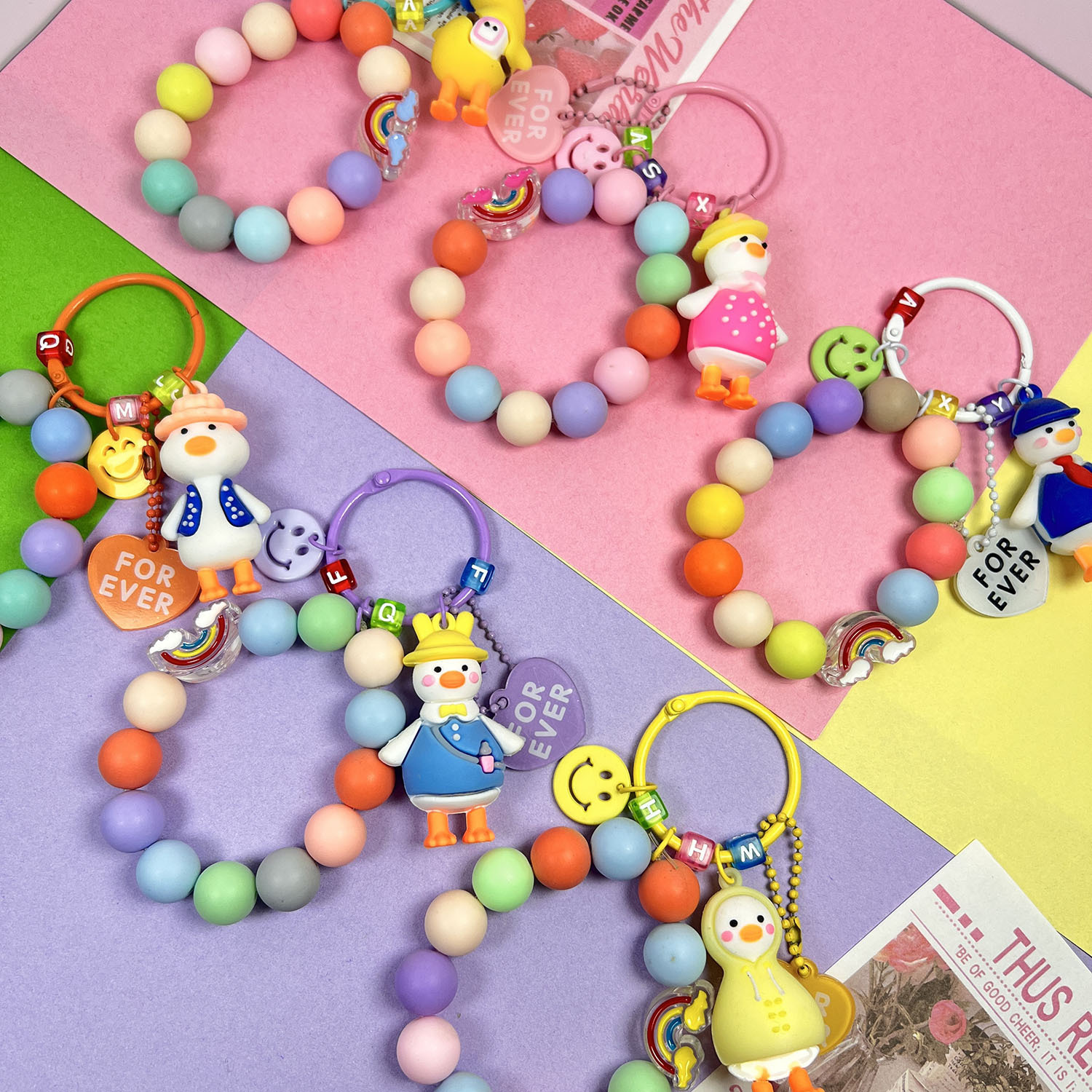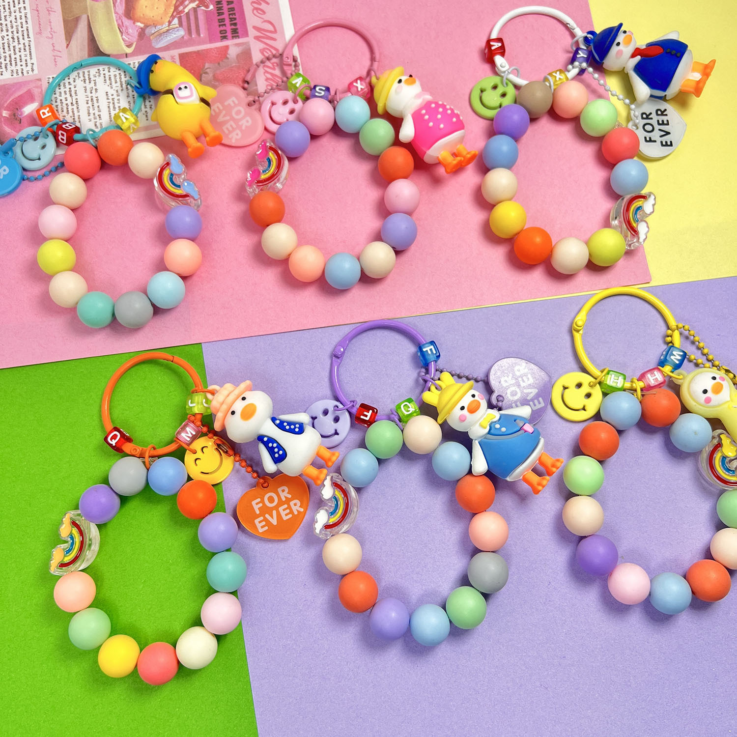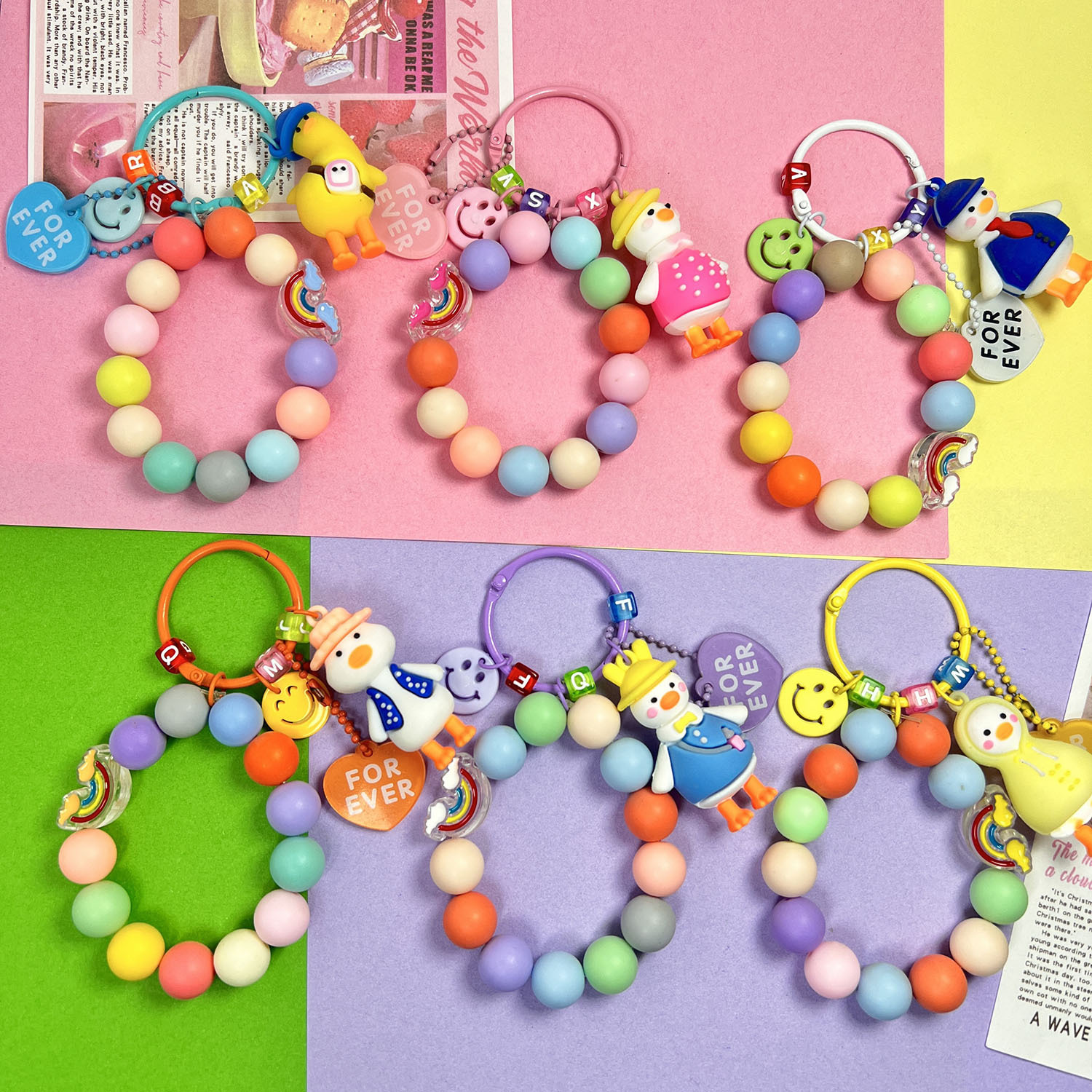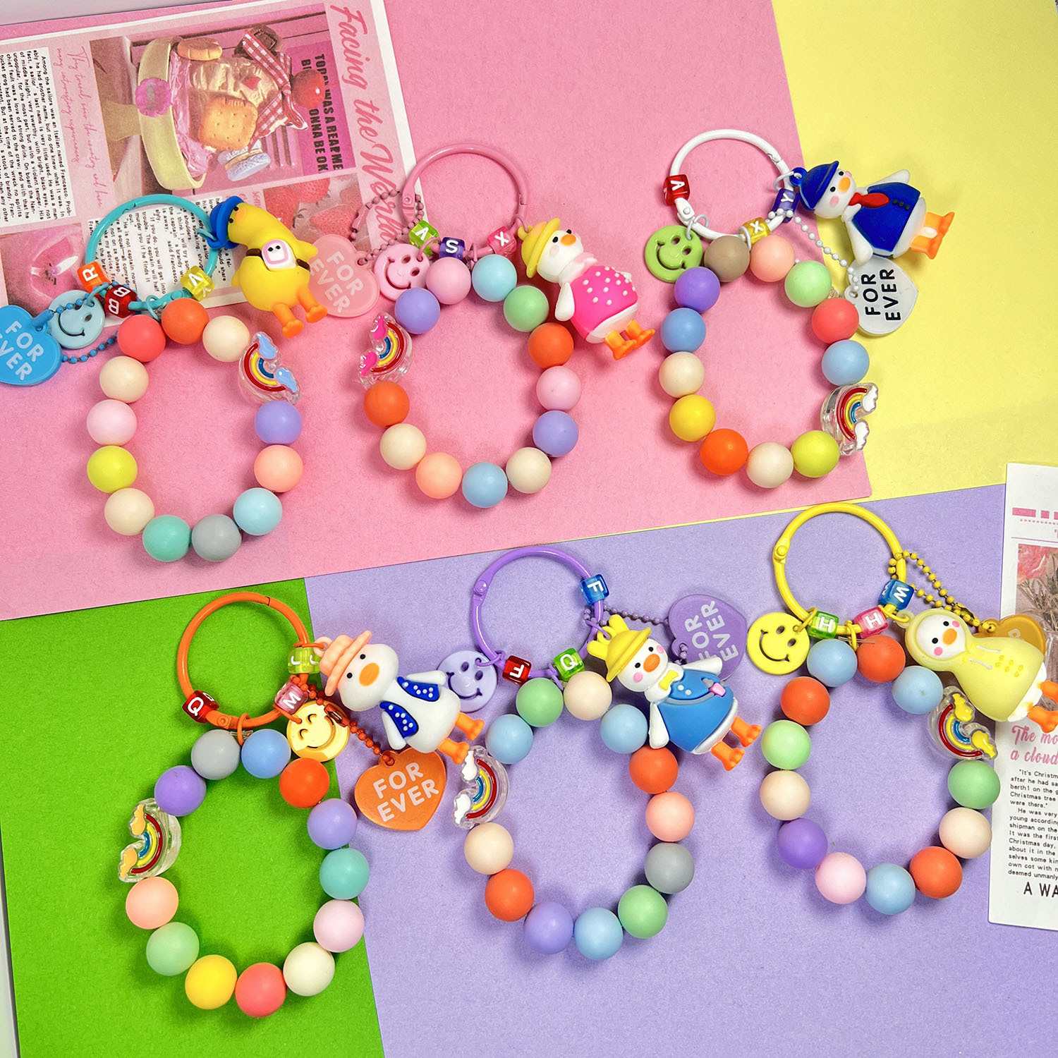 Главная страница > Милая силиконовая кукла-утка, автомобильный брелок, креативная красочная цепочка с шариками, сердце, бусины с буквами, аксессуары, украшение для сумки