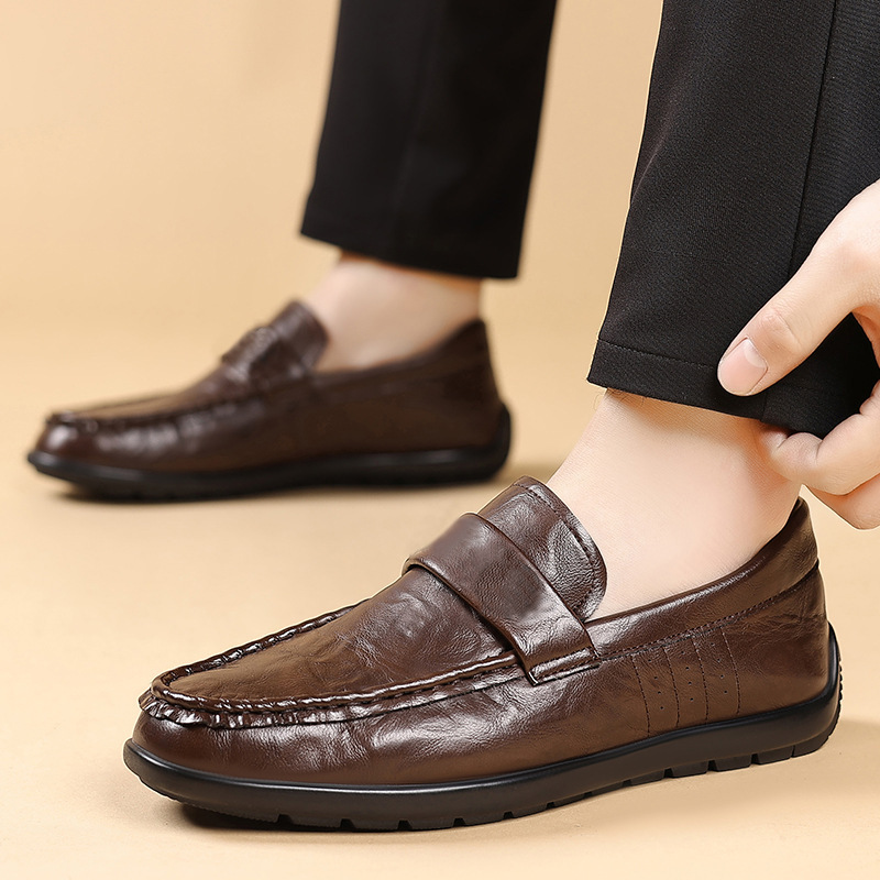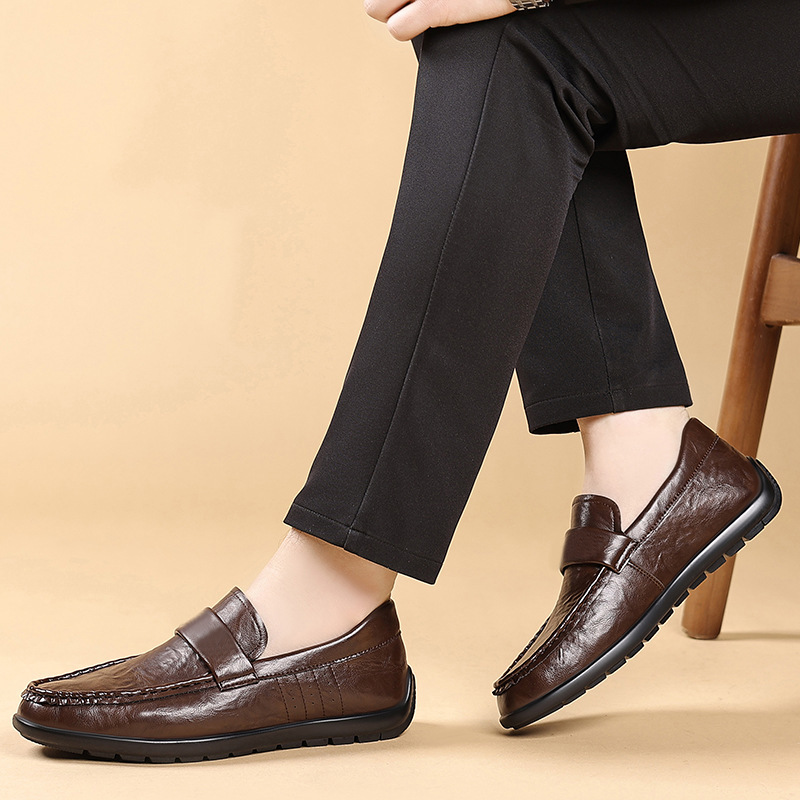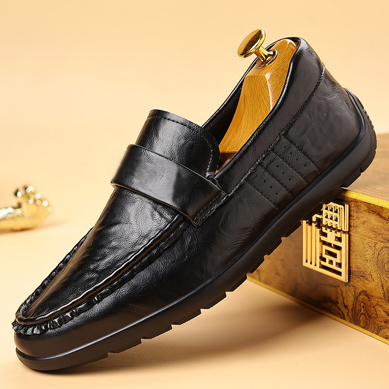 Главная страница > Весенняя мужская обувь, деловая официальная британская повседневная черная кожаная обувь, спортивные туфли без шнуровки для вождения, модная обувь, размер 47